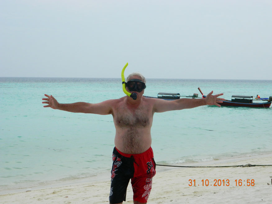Pattaya Beach facing west is smaller, but this beach explodes into life after dark with beach bars and restaurants using all available beach space. I'm inclined to avoid it. To give you some idea of the island's size, there is a concrete road barely five feet wide connecting the two beaches. It's a ten-minute walk along Walking Street. Private cars are not allowed on the island, motorbikes and sidecars providing the only transport for tourists. They aren't generally needed except for moving luggage and other supplies. There is one more beach to the north known as Sunset Beach, but it is small, much less developed and certainly harder to get to over rutted tracks. Busy doing nothing..... With clear blue skies today it brings home the sheer beauty of Koh Lipe. I'm dazzled by the clear blue/green waters containing patches of darker blue revealing the presence of coral below. My beach hut is practically on the shoreline. It's hard to wish for anything better than this. I'm itching to plunge into that crystal clear water. I'm only restricted by the cluster of long-tailed boats moored on the shoreline. I decide to take a walk north along the beach stopping for a swim as the mood takes me. Certainly, the northeast corner of Lipe appears the most beautiful overlooking as it does the much larger island, Koh Adang. Here, I observe a few souls swimming and snorkeling in these magical waters. I soon join in. Curiously, I make my way around the headland and into the interior. Here there is still space on the island but in stark contrast it is literally a building site also housing the islands refuse, water storage tanks and a battery of solar panels. The matrix of dirt tracks eventually takes me to Pattaya Beach now almost deserted at midday. It's hot and time for lunch. It will be my only cooked meal today. A change of plan..... I head back to Wapi Resort with one thought on my mind. This location has grabbed my attention in a big way. It's been a long time since I've experienced anything like this and it will get even better. Worried that I need to confirm my ferry ticket for the morning I take an instant decision to extend my stay here for a further night. That will leave just 2 nights left on this tour. I'm prepared to compromise the fourth and final location which takes me into the next province of Trang. Trang also has its fair share of tropical islands, but I'm running out of time to do it any sort of justice. With excellent air, road and rail links compared with Satun it could easily form a tour of its own or perhaps combined with Krabi. I confirm the extra night with the owner of Wapi and acquire a snorkel and mask. Underwater paradise..... I haven't tried snorkeling since I jumped off a boat out of Mombasa which scared me to death but here in the shallow lagoon at Lipe I hope to kill that demon. It would be a shame if I failed. Fortunately the coral starts with water at chest height and offers a great chance to practice. My perseverance pays off. I'm absolutely bewildered by the variety of tropical fish species I noted so close to the shoreline. Clown fish, angel fish and a host of other species swim amongst the coral which accommodate sea anemones of various types in bewildering colour. It's 4pm before I make this discovery. I'm itching to try this again tomorrow. Fantastic! It gets dark here just after 6 pm and time to walk up into the town to get a snack. It will be enough for today on this odd anniversary.