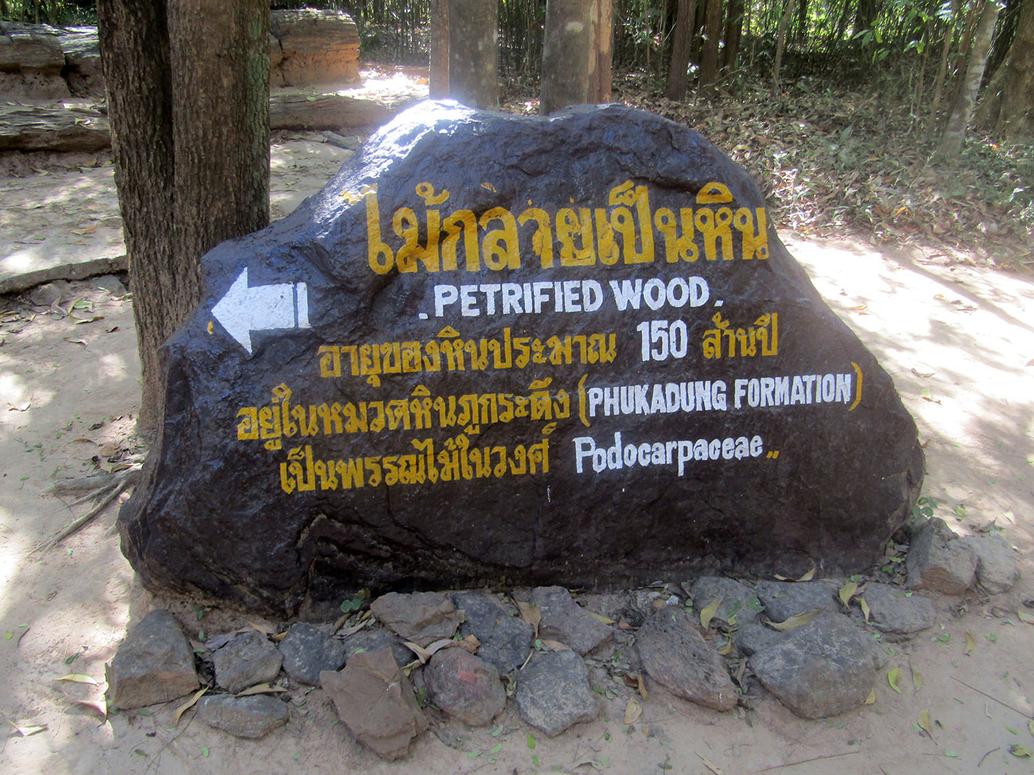 A few kilometres from Highway 2101 is the entrance to the park. A single lane tarmac road leads into the park and past a dinosaur fossil site but the main attraction is a few kilometres further along the road terminating at a visitor centre. Warned in the village that this is a place locals never go, true to the word, it’s completely deserted. However, there’s enough signage to direct me to what I’m looking for. Firstly after 150 metres there is an example of petrified wood, the first I’ve seen outside a museum and left exactly as it was found. Then 200 metres further along the track is the fossil bed and the remarkable dinosaur footprints. Discovered just 22 years ago by two young girls, the site has attracted the attention of researchers but not yet by the public it seems. Yet I’ve no issues at all in making this big detour which puts me at the maximum distance from Bangkok on this tour.