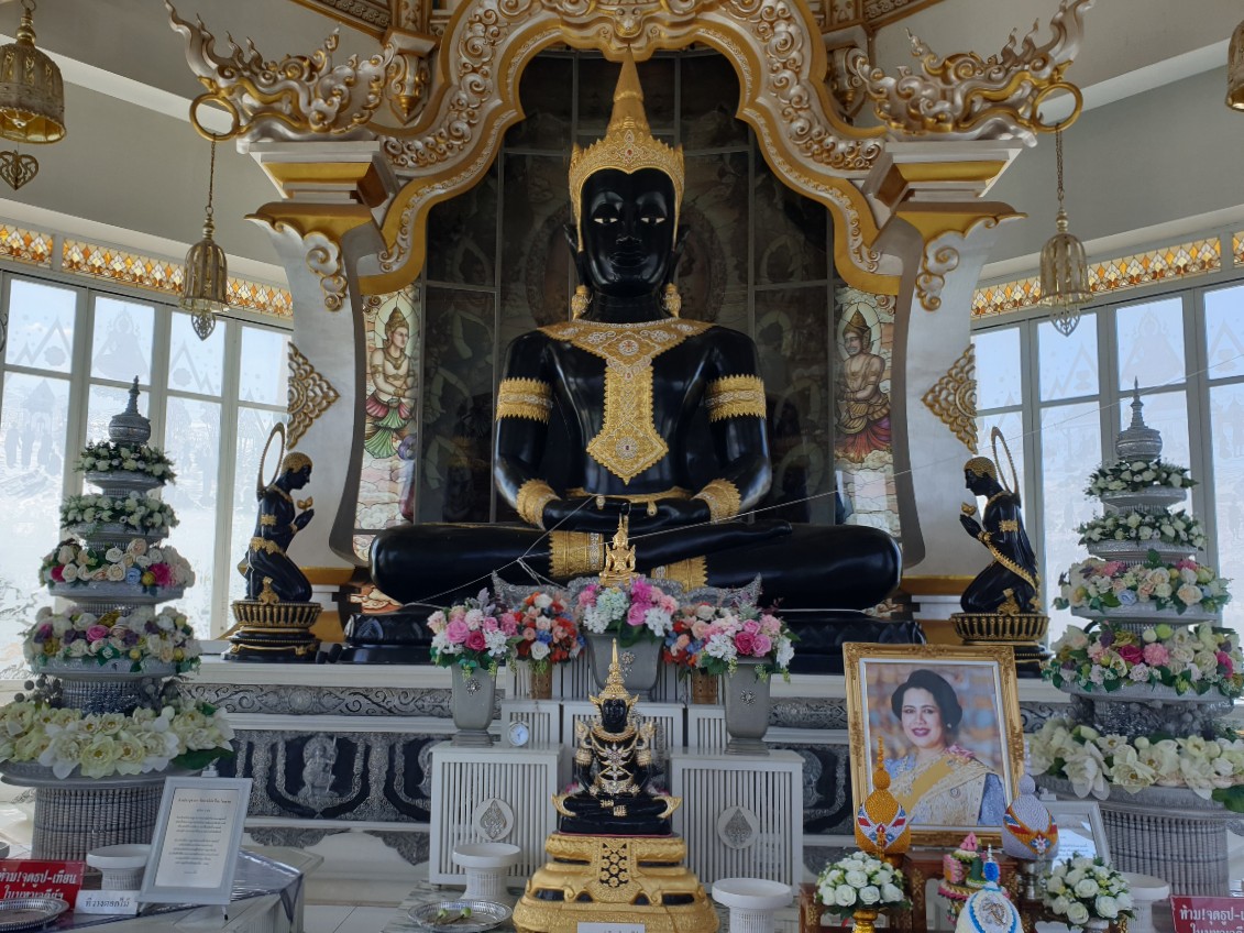 The current buildings in the temple include 1) Maha Rattana Chedi Sri Trai Loka Dhatu, 2) Mondrop Pathom, 3) Phra Bhudda Nilavarno Silotrapyudom or Luangpho Dumm, 4) Nakara or Hell Outdoor Museum, 5) Sculpture of Naga, 6) Vantah Chulamani Stand and Nagachedi Srinagin Pier, 7) Other buildings.