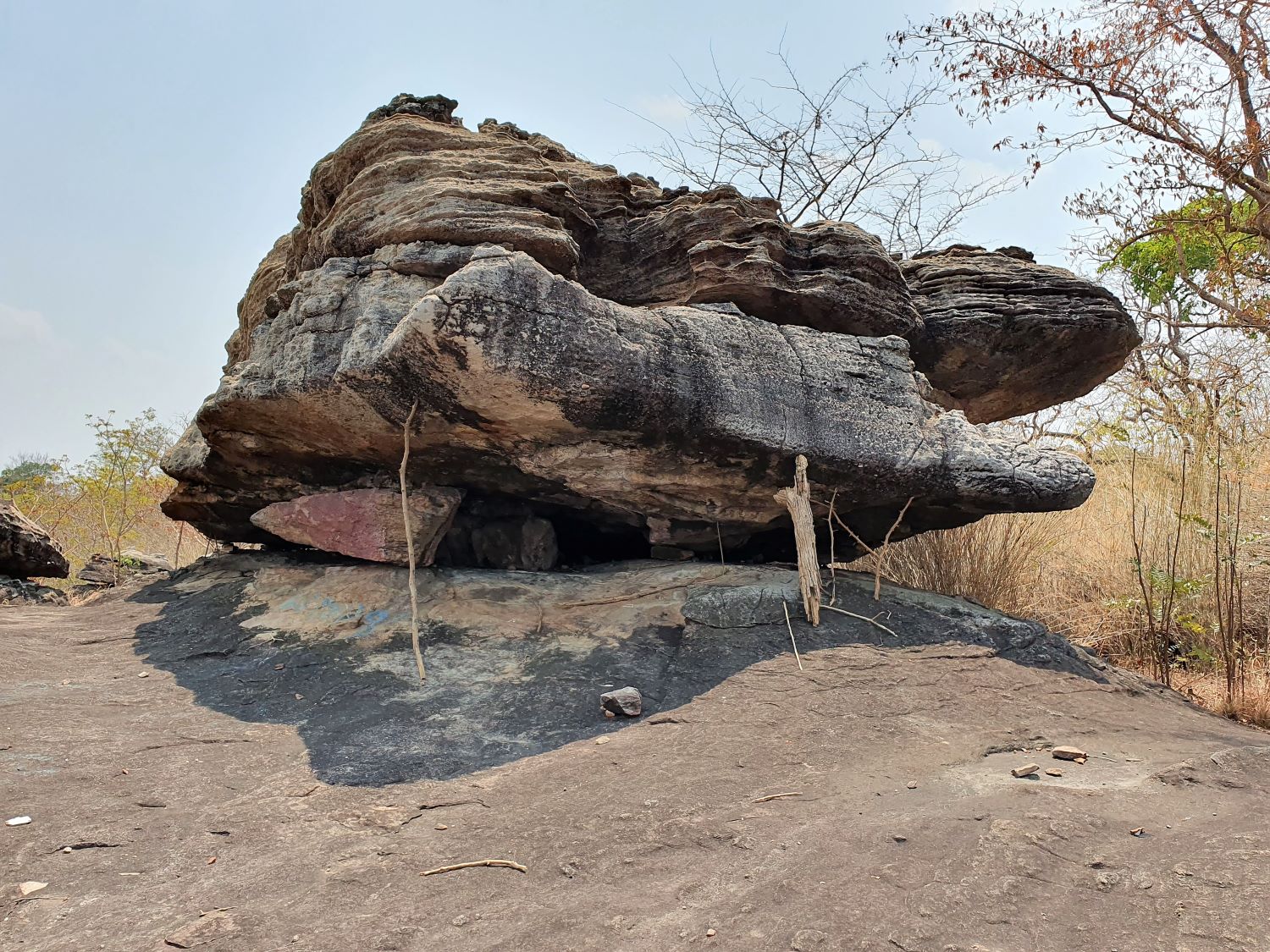 Phu Mak Phrik.......Phu Mak Phrik he described as a priest camp a place for meditation and a place for monks to retreat from their normal duties. Surrounded by sandstone rocks and cliffs monks can come here to find solitude in primitive and self-sustaining conditions.