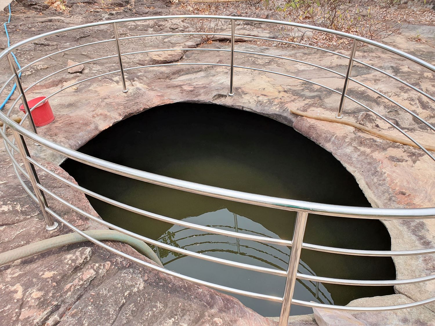 Phu Soong Charoen Tham Buddhist Park....... The curious thing about Phu Soong Charoen Tham Buddhist Park is the lack of information available for it compelling me to resort to geographical and visual information only. Its location is at the southern end of Phu Sa Dok Bua National Park. As I have noted already this is another area of low sandstone hills where the rock has been weathered down creating stone fields so baron that vegetation struggles here to obtain a foothold. It's in one of these areas they have created Phu Soong Charoen Tham Buddhist Park which is a model park representing forest creatures of many kinds but of course, there are religious buildings here too. The most prominent feature is a large white Buddha image not too dissimilar to one I saw in Mukdahan. While I would like to know more about this park, it's certainly interesting to walk around and enjoy some amazing scenery. From a geological point of view, I record potholes or boreholes created by nature here where I wouldn't expect them. This is an indication that this land was once submerged despite its current elevation.