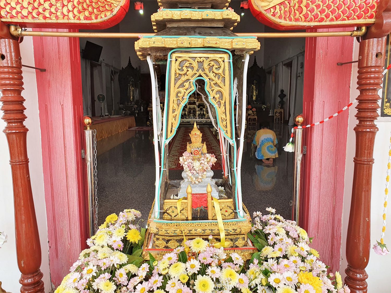 I must admit that I am privileged to be here during the three days of Songkran. During this time the sacred image is placed in a position that allows worshippers to pour water over it in an annual cleansing ritual.