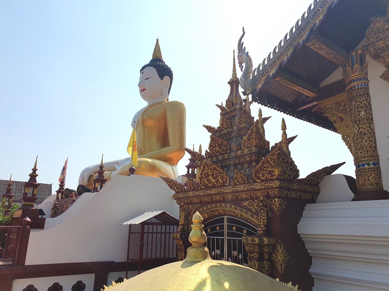 The temple’s chedi or pagoda, called Wat Phra That Ket Jula Manee, contains a relic of the Buddha. The design of the pagoda reflects Burmese influence, as it was restored under the reign of King Nawratha Minsaw, who was the son of the Burmese King Bayinnaung.