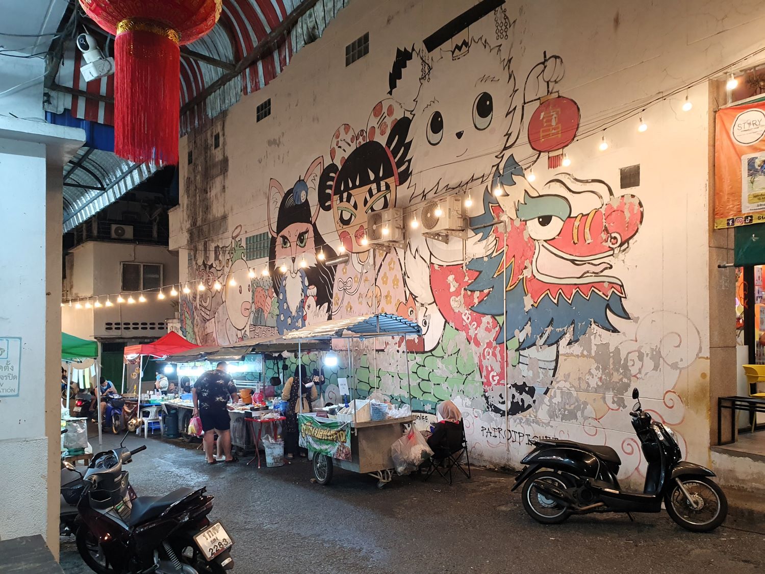 When we reach Betong Hill Residence Katoon is off to do some washing while I take a break and start writing my notes. Rather later than I intended we decide to take the 20-minute walk down past the clock tower and into the tourist streets. Katoon is on the hunt for poultry. Betong Chicken....... Betong chicken is a culinary delight from the southern region of Thailand, renowned for its tenderness and rich, flavorful meat. The cooking style here in Betong originates from Hainan and is considered to be a delicacy that is known throughout Thailand. Obviously then it's 'chicken tonight' at one of the Chinese restaurants. Served with tender vegetables, this dish is remarkably tasty. What isn't so tasty is the price. I've never paid 500 bahts for chicken in Thailand before. I just goes to show that when you have a good product it will sell itself by word of mouth and go viral. You can then do big business which is what the Chinese are good at. Walking out to dinner has given us a great opportunity to appreciate the glamour of Betong with its famous Betong Mongkolrit Tunnel, night markets and street art before we head back to the hotel.