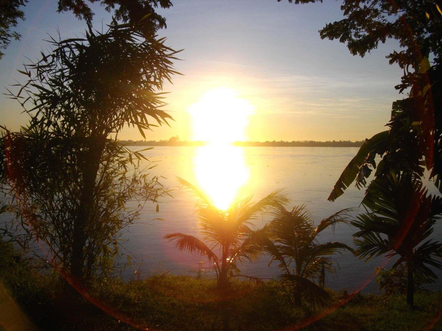 Departure for Pakxe....... As the sun rises over the Mekong's east bank, I'm thankful I didn't miss it as today I'm heading back to Pakxe. By 7 am the dusty road is starting to fill with school children. They start school early here but take a long lunch break, 11 till 2pm. I skip breakfast, packed and ready. Transport to Pakxe starts early too and soon I'm on the road again. 1 hour 15 minutes later I am in Pakxe. And on to the Bolivan Plateau. At the local market I'm directed to local transport for Pakxong, 50 kilometres to the east. I have a good hour to spare; time to change money and get some breakfast. The local market also houses a food hall. Suitably refreshed with Laotian coffee I pick up some bread rolls, jam and other fillings as I gradually figure out how things work here.