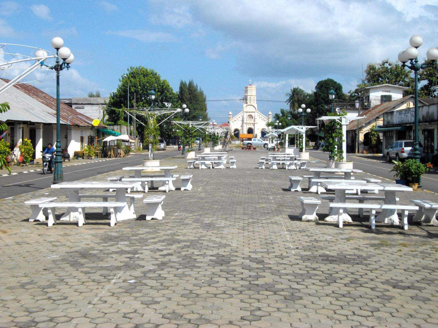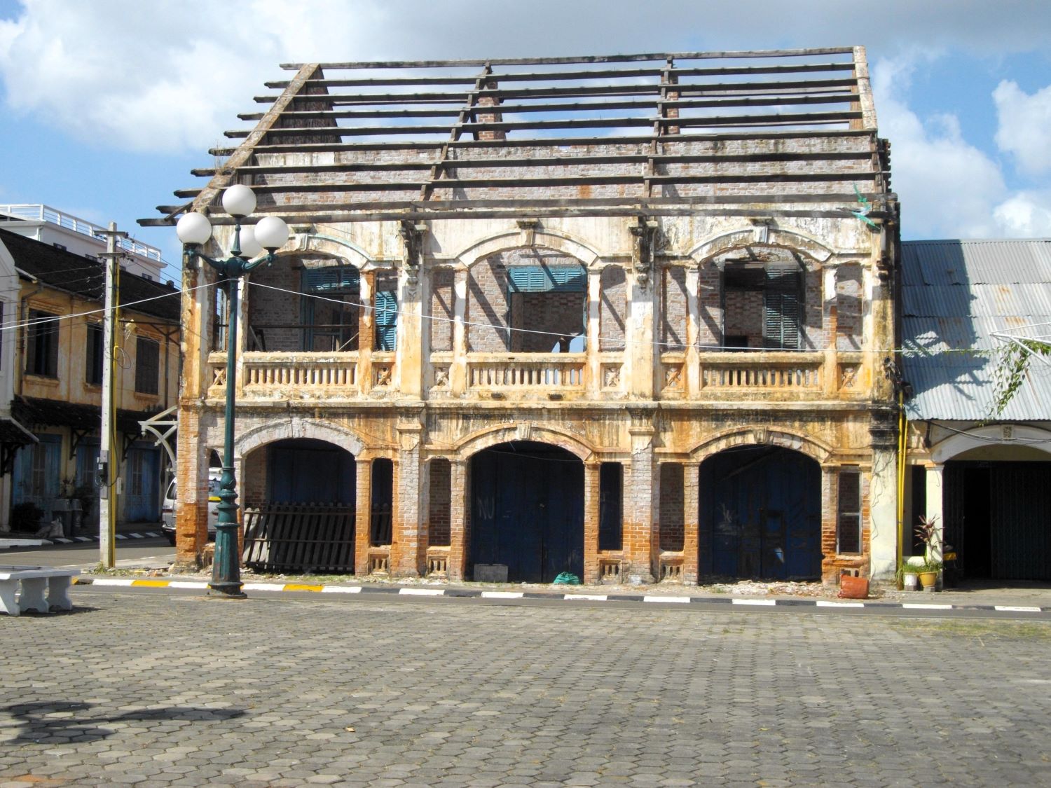 Savannakhet 1st Day....... After a comfortable night I take a coffee with a baguette and jam brought up from Pakxe. Now I need to get my bearings and find out what there is to do here. So, I pop round to the internet cafe to download some pages. I need a map so I can make my way to the tourist information office to get a map!! Sounds Chinese? Well, that's where I take lunch, duck on rice. I grab a town map from the motorbike rental shop next door and head for the Plaza. Here I find the French old town. Traditional French style architecture greets me but in many cases the buildings are in decay. Thankfully, there are plans to restore some of the old colonial buildings and put them to practical use. It's reassuring that we may soon see similar sights to those at Luang Prabang.