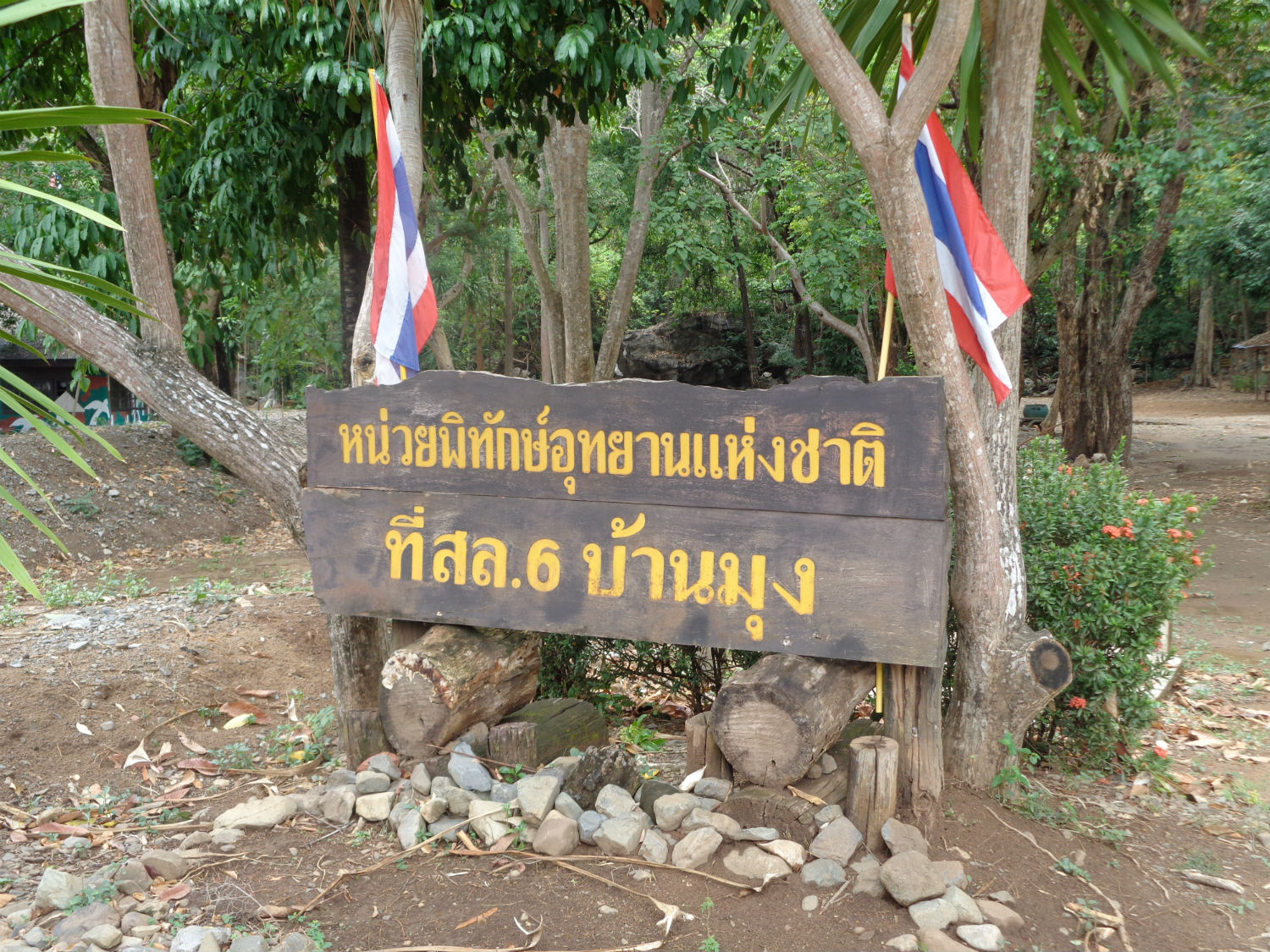 Wat Tham Lod........Just a few kilometres from Wat Amarin Khuha is Wat Tham Lod, the name suggesting a cave system. Arriving at this location, I’m curious to know why it is so many visitors have made it here, with vehicles filling the compound and occupying the roadsides. As I enter the cave there are few people making their way along the water coarse, now dry, appearing in the open on the other side of the mountain. Luckily here I find some information about the cave.