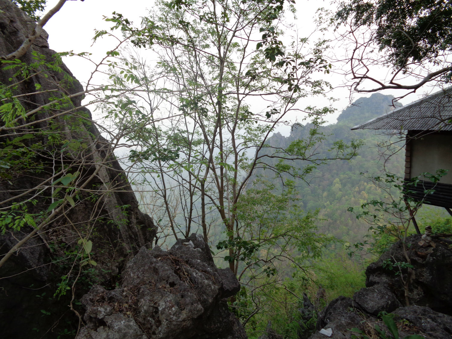 Wat Chaloem Phra Kiat Phrachomklao Rachanusorn........Wat Chaloem Phra Kiat Phrachomklao Rachanusorn is located in Chae Hom District in the north of Lampang Province, the town itself lies in a wide valley surrounded by mountains. It’s not the easiest place to reach but nonetheless we reach the town around 4pm. The temple itself is another 15 minutes drive deep into the mountains. The temple consists of a collection of chedis and other buildings perched precariously high up on top of jagged mountain peaks. Yet there seems to be a way to get there. Arriving at a parking area, I note a collection of 4 X 4 pickup truck lie waiting for customers. Although quite late in the day, it appears we are just about in time to make the trip with 2 hours of daylight still left. Although a rough ride in a pickup truck doesn’t bother me, a 30 minute stiff climb to the summit does but by now it’s just like a rolling stone down the mountainside; it’s hard to stop.