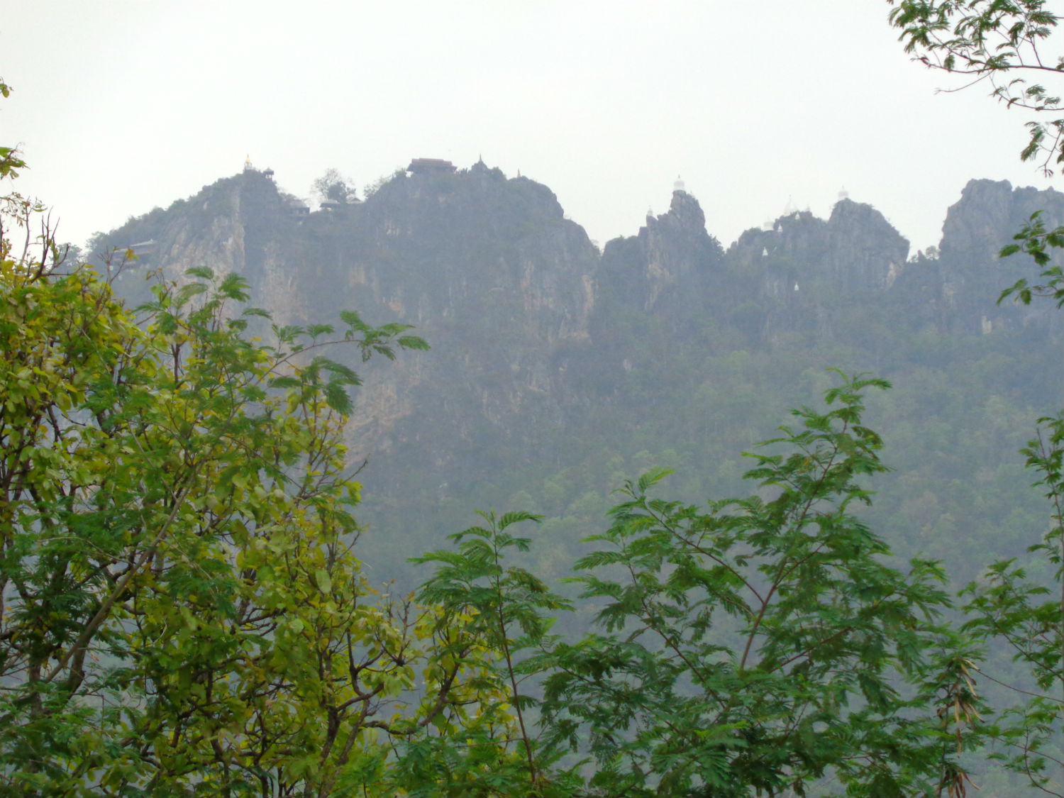 We’re instructed to wait at the car park since the rough concrete road is single track and a signaling system is in place. Then as we get going the sensation of altitude and spectacular views kicks in. Still there is that climb to worry about for me. As we start the climb those descending wish us luck Hmmmm! All I can do is see how I feel and soon I’m in a sweat. It’s just a case of taking it in stages. After a short stretch of concrete track, the way converts to metal plate consisting mostly of a staircase that seems to go on forever high among the jagged peaks. At about half-way, I wonder whether I can make it but with second wind I see we’re near the top. The final approach is level where the chedis come into view. Needless to say the views below are stunning as we explore the area. Katoon makes the final assent to the peak for photographs but I am just releaved to make it this far. With time running out we are granted 20 minutes at the site, thereafter the park official will follow us down and arrange transport as the last visitors of the day. It's time to reflect on just how these 'floating chedis' came to be here.