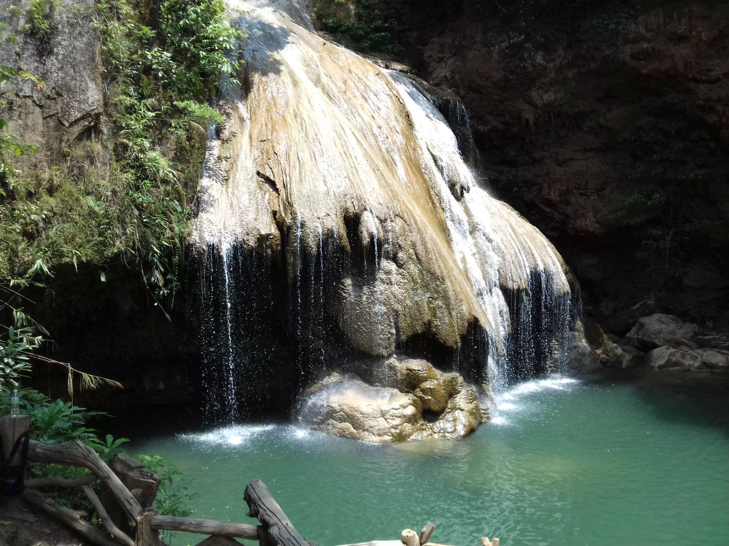 Ko Luang Waterfall........Ko Luang Waterfall is described as a 7-level limestone waterfall originating from the Mae Ko Stream. The stream travels from abundant forest over a high cliff into a large pond which glistens emerald green in winter.