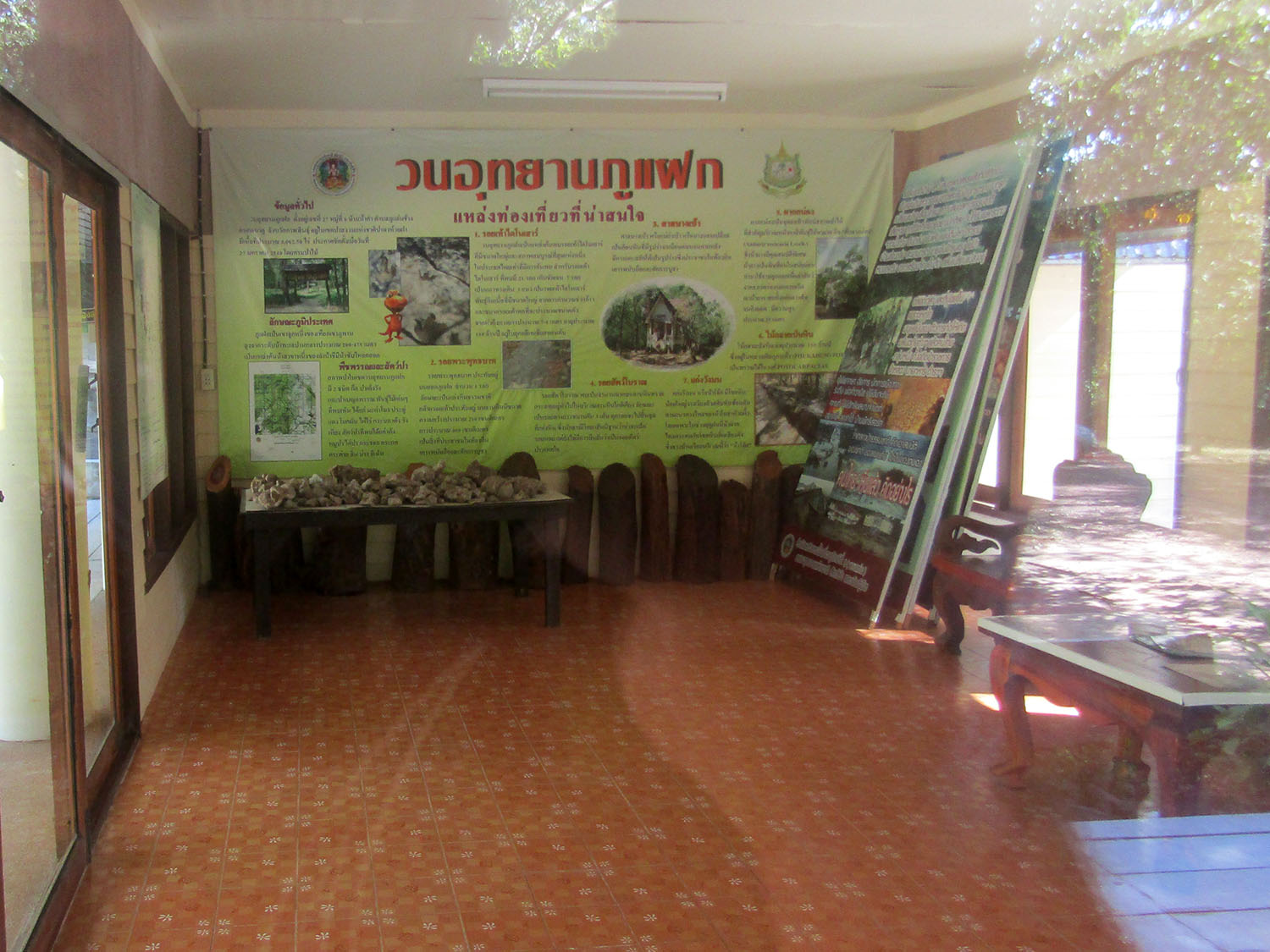 A few kilometres from Highway 2101 is the entrance to the park. A single lane tarmac road leads into the park and past a dinosaur fossil site but the main attraction is a few kilometres further along the road terminating at a visitor centre. Warned in the village that this is a place locals never go, true to the word, it’s completely deserted. However, there’s enough signage to direct me to what I’m looking for. Firstly after 150 metres there is an example of petrified wood, the first I’ve seen outside a museum and left exactly as it was found. Then 200 metres further along the track is the fossil bed and the remarkable dinosaur footprints. Discovered just 22 years ago by two young girls, the site has attracted the attention of researchers but not yet by the public it seems. Yet I’ve no issues at all in making this big detour which puts me at the maximum distance from Bangkok on this tour.