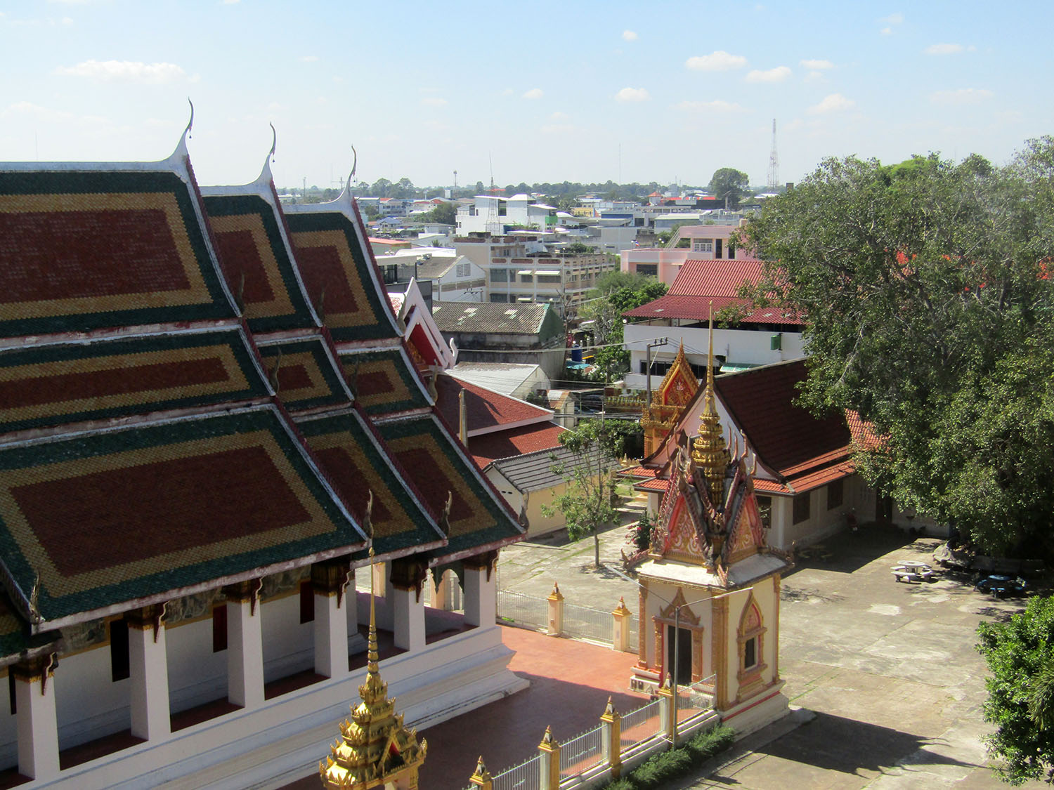 Our stay at Bueng Plan Chai allows us the take lunch here but this will be the last site visit in the city itself. Exiting the city, we head along Highway 2045 heading southwest then turning right on to rural road 4009. Here about 20 km from the city is Wat Pa Kung Si Somdet which is built in a style unusual in Thailand.