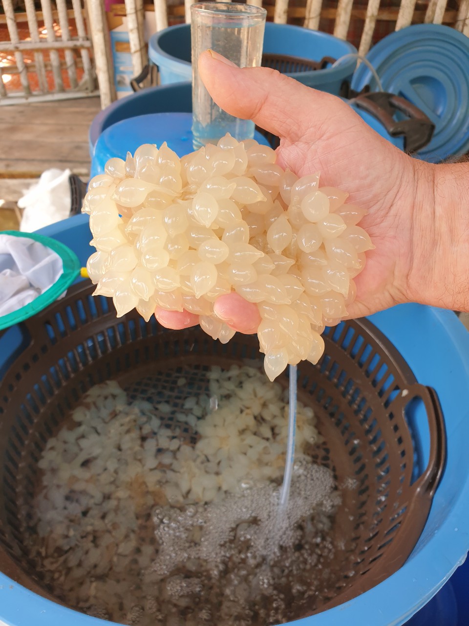 Close by, another family is engaged in the end process. When the crabs are about four months old, they are harvested and turned into crab meat. I've reminded myself to come back here in February next year to collect my prize. The success rate is back in the green but not for long.