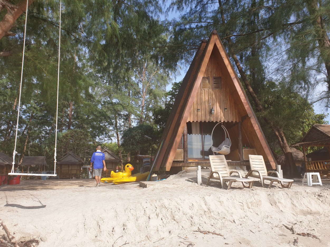 Mot Tanoi Beach.......Returning north towards Kantang dare I add one more location? Mot Tanoi Beach is located on the opposite side of the Lat Chao Mai an is no distance as the crow flies but by road it's a 15-minute detour. Mot Tanoi is another fishing village but with a web of narrow streets. Figuring out where the beach is wastes time. We find Blue Lagoon Home, a mixture of cabins and huts but as least it is used for what we normally need a beach for. However, this is a location I certainly could have left out. East from here is the Trang River, there is another pier there, Pramuang Pier and further up the river Na Klua Port but we've run out of time and head for Kantang.