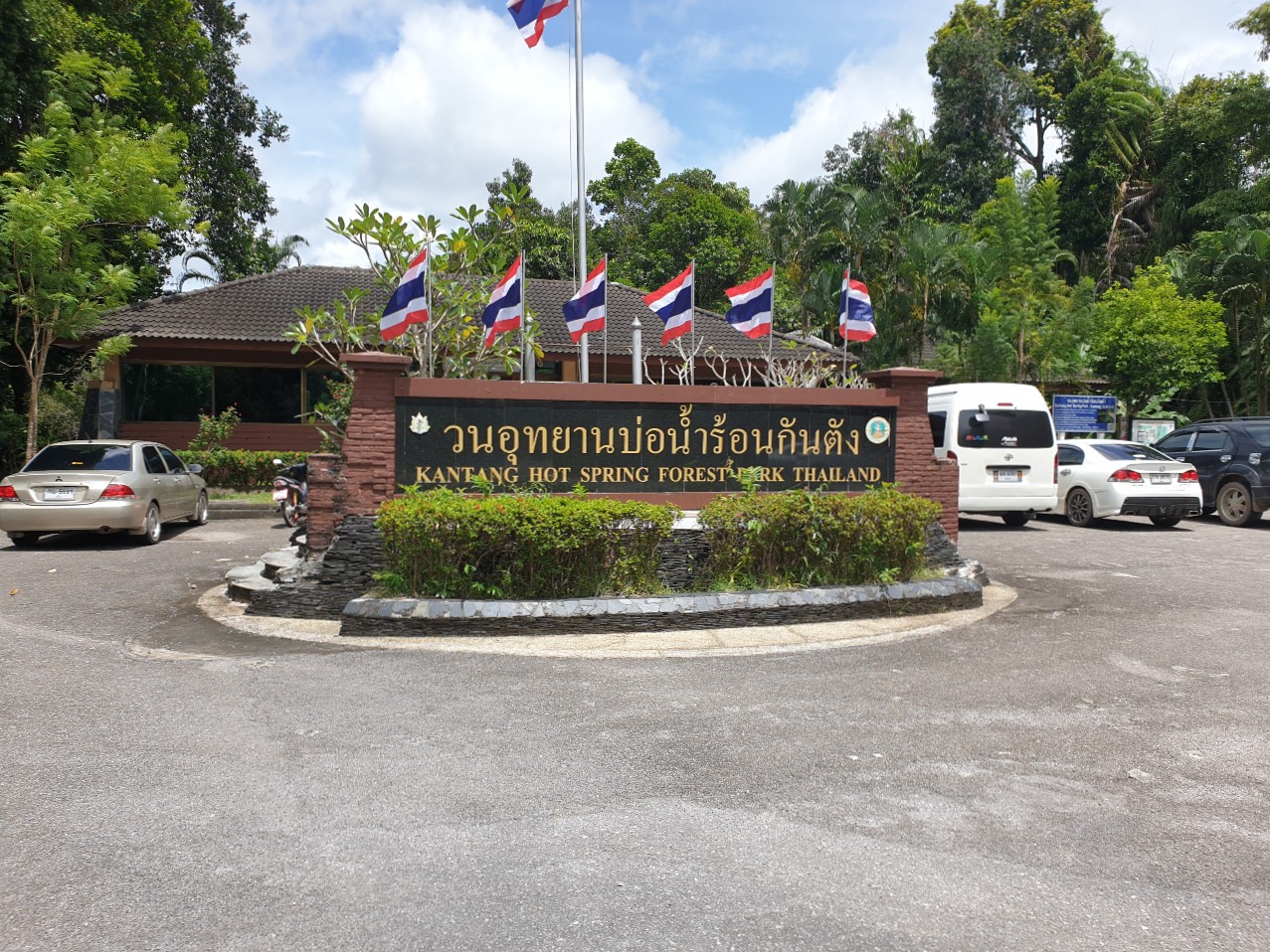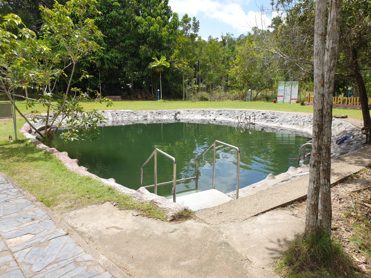 Kantang Hot Spring Forest Park.......Kantang Hot Spring Forest Park is just a few minutes after turning off the same highway. A forest park in Thailand means it will be maintained by the park's service with its own ranger station. Usually, these parks charge no fee or just a small fee but for the second time I've witnessed in Trang province they accept donations much in the same way as temples are financed. Once inside the park you immediately see the hot springs running at a temperature of about 50 Celsius. Obviously, visitors are allowed to enter the pools and I've done this a few times in various hot springs but these days I can't risk it for fear of developing cellulitis which has caused me serious problems in Thailand before. The concrete walkway through the forest though, is well to my liking. This interesting forest park certainly get the thumbs up from me. We head further west to the coast in the direction of Pak Meng to another beach.