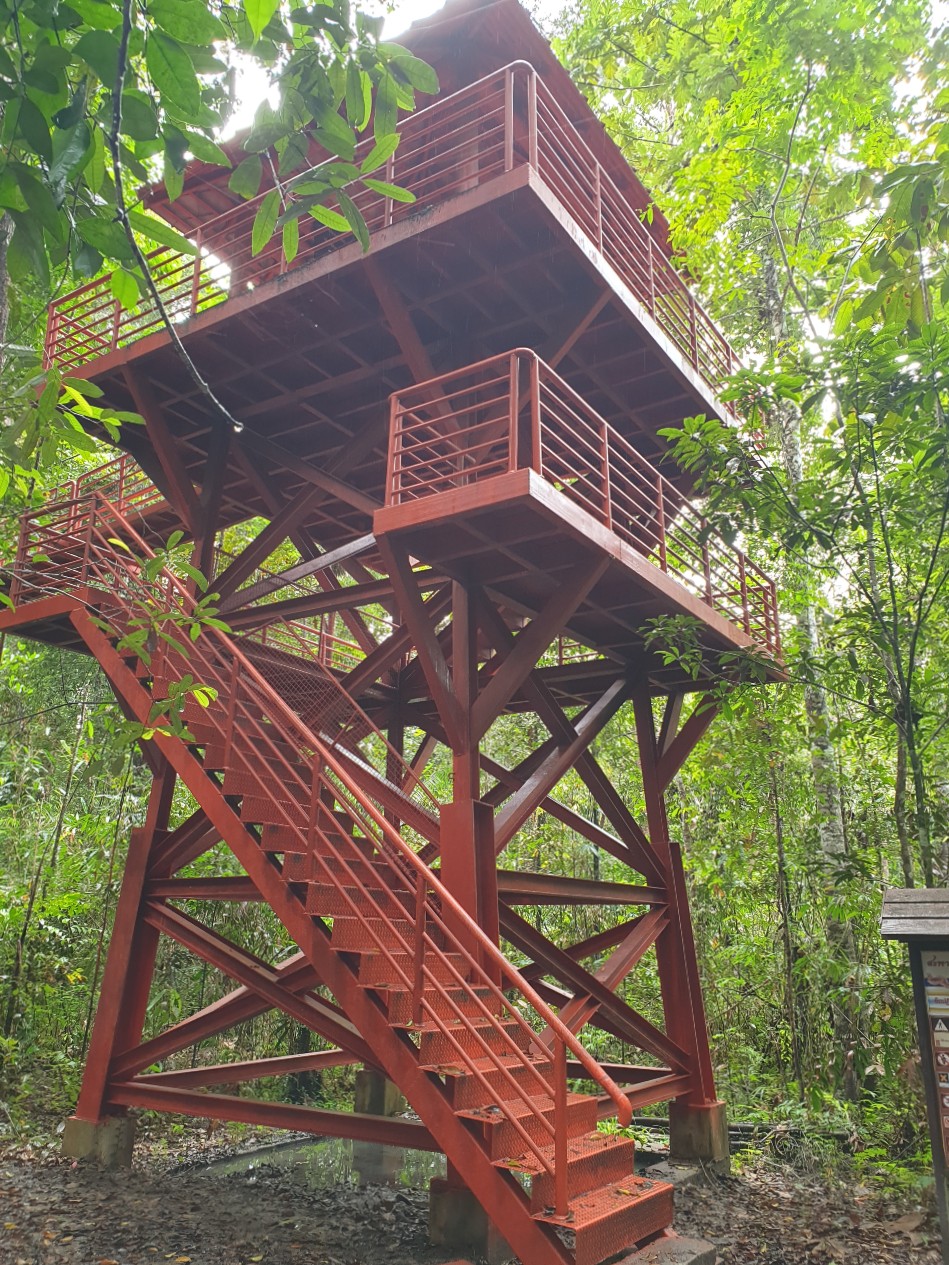 Thung Khai Botanic Garden.......Thung Khai Botanic Garden, just off highway 404, 10 kilometres south of Trang is a prime example of how the ecology of the rainforest works. In terms of rainfall, it acts as a sponge absorbing most of the rainfall. This park has a well-maintained pathway of around a kilometre where many rare examples of flora can to found. Some of these are tagged with QR codes to help with identification. Pictograms provide information on various aspects such as reproduction, fungi and the roll of ants. However, for most people the most important feature of this park is the canopy walk consisting of towers and suspended walkways high above the forest floor in the tree canopy. It's a rare opportunity to see the forest from this perspective.