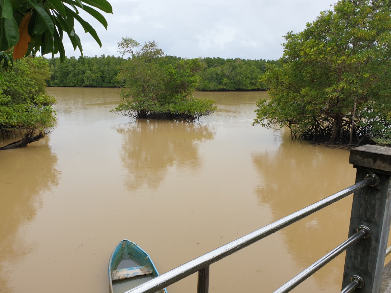 Tide's Dam Saline.......As we move further south, about 5 kilometre from the 404 is a viewpoint. This viewpoint lies at the head of the Palian river estuary. It consists of a concrete walkway leading to two pavilions. These give you the perspective of actually being on the river itself and on the subject of rain you can just imagine what this river looks like in flood. As I proceed to tick my boxes, what has been threatening to happen all trip finally kicks in. No marks for guessing; the heavens just opened.