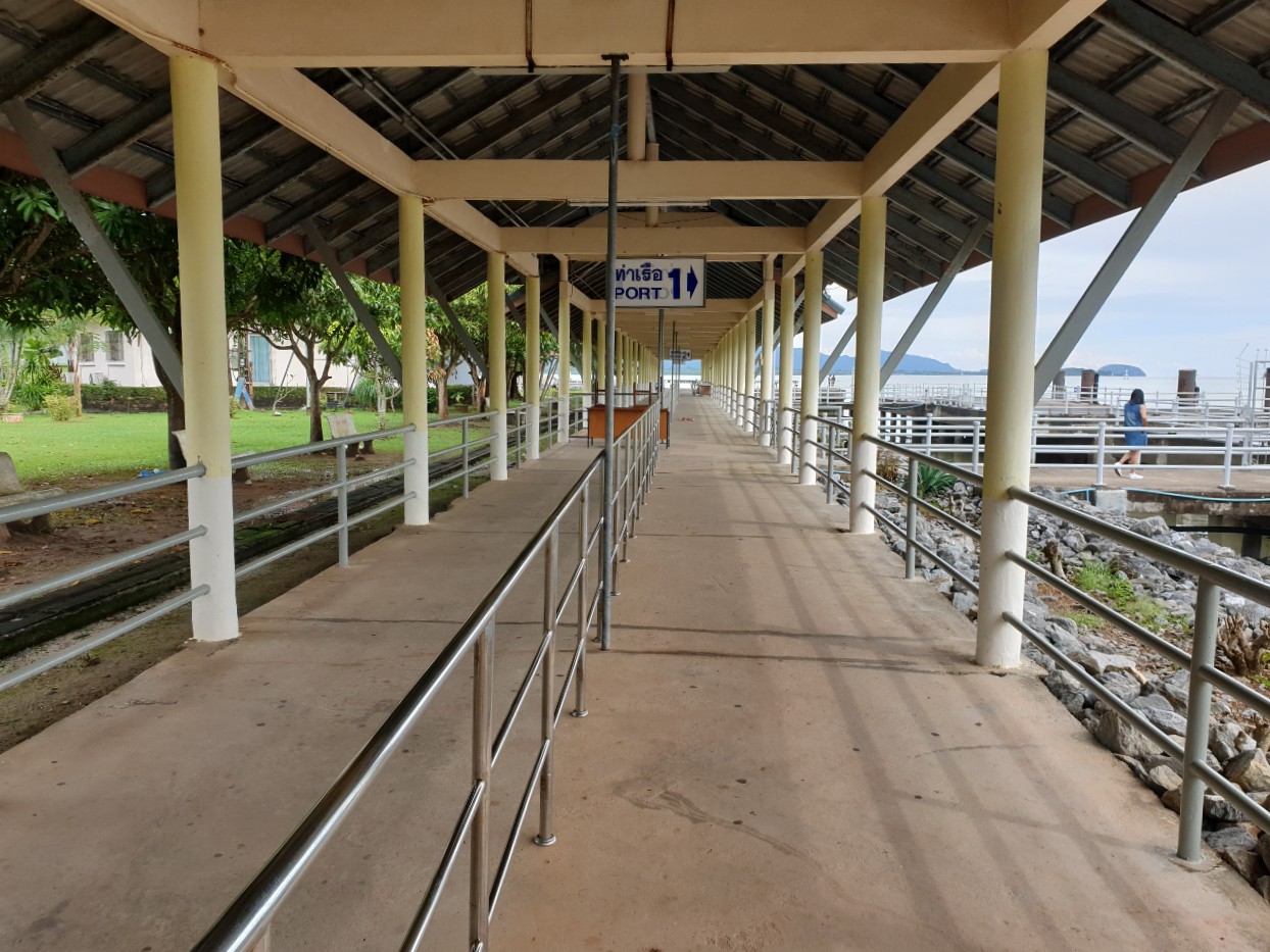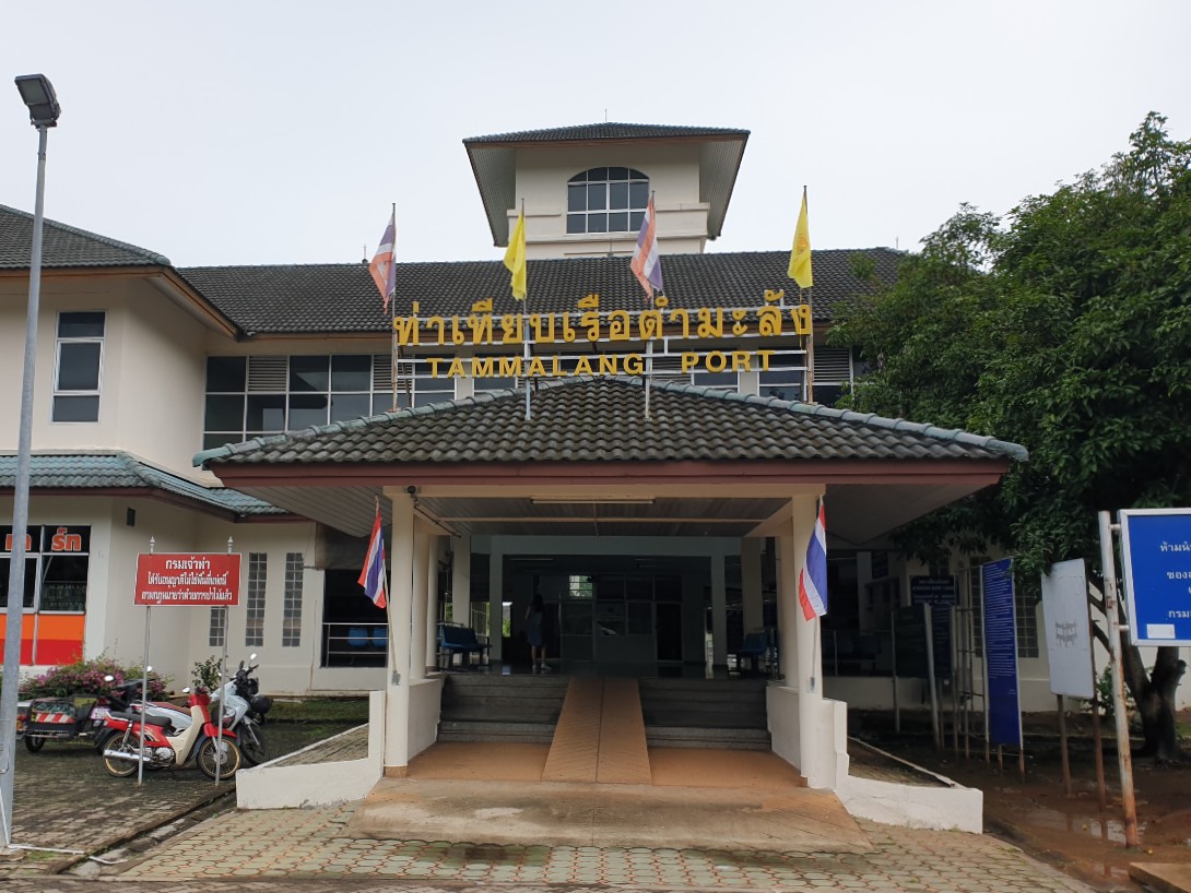 Tammalang Pier.......At Tammalang Pier just the same as at Pak Bara Pier we make a reunion with the past. It was here in 29 October 2013 that we arrived from Langkawi Island in Malaysia by speedboat. When we arrived then, we were processed though immigration and customs and whisked off to Satun for an overnight stay but we arrive here now in very different circumstances. The customs building is completely deserted apart from a lady on information duty. This is in stark contrast to the hustle and bustle at Pak Bara Port further up the coast. There is just one ticket office here but no tour company offices or food sellers. In fact, it's so quiet that all the gates to the pier are open; I even walk down the passageway that I walked along while queuing at immigration after disembarking. I stay a while taking it all in, watching a few fishermen on the pier and gazing upstream at a larger fleet of fishing boats. Then, what happens next, I didn't expect.