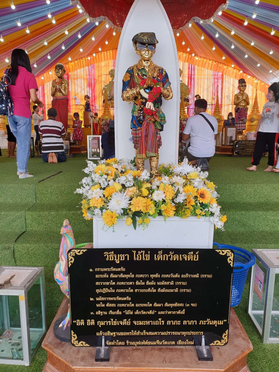 Wat Chedi (Ai Khai) Temple.......Wat Chedi (Ai Khai) Temple known for its 'Egg Boy' statue, said to grant wishes. According to legend, (novice monk) Ai Khai was a boy following Lung Pho Thuad on pilgrimage. When Lung Pho Thuad came to Wat Chedi, he ordered Ai Khai to stay there and look after the temple for him. Unfortunately, Ai Khai died young but his spirit has lived there ever since and never fails in his promise to look after the temple for Lung Pho Thuad.