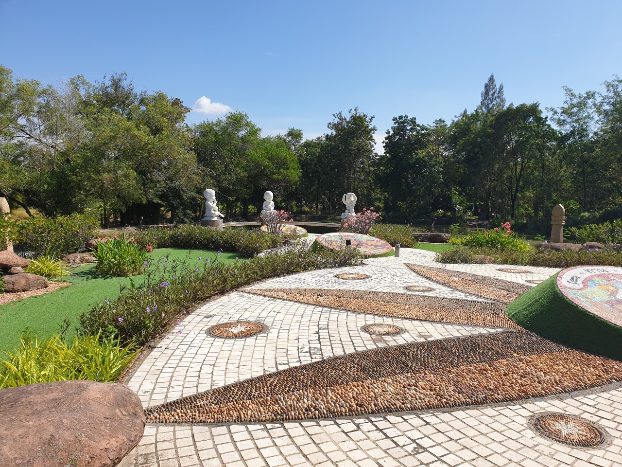 Wat Thung Setth.......Wat Thung Setthi is located at Phra Lap in Mueang district in an area covering 73.5 rai (29 acres). It was first built in 1999 by Luangfa Ov. Luangfa Ov has been a strenuous supporter of many noble orders mostly the Theravada doctrine of Luangpho Mun Purifatto in proclaiming Buddhism too lay persons in northeastern Thailand. After so many years traveling the region he realised that it was time to assist and guide worshippers in his hometown of Khon Kaen. He then initiated the plan to build this important temple. Construction began in 2000 with the Hor Chan or dining hall. In 2005 the construction of Maha Rattana Chedi and other buildings began. 5th May 2012 was an auspicious day with completion and inauguration of the Maha Rattana Chedi.