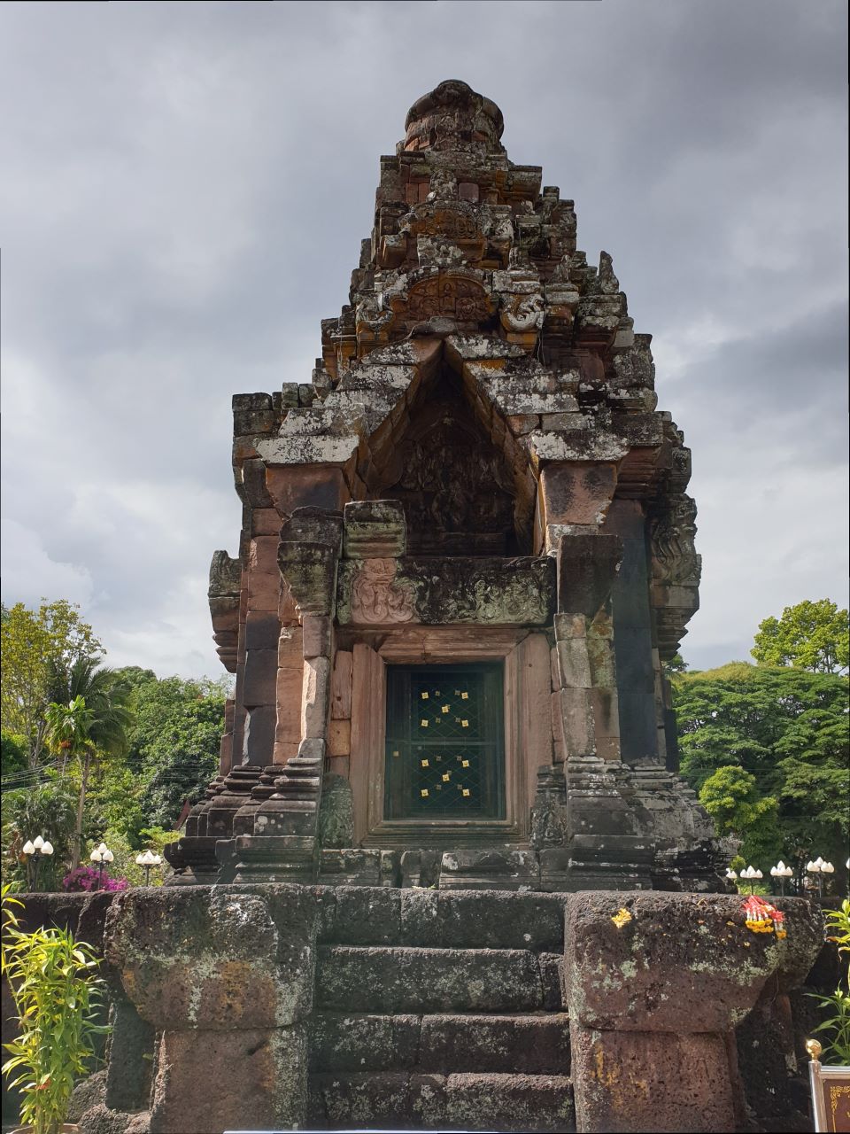 Phrathat Narai Cheng Weng is a Khmer sanctuary in ruin built of sandstone. The Phrasat is built on a terrace extending beyond it. There is only one entrance, the other three sides have false doorways. A stone lintel depicting Krishna fighting with a lion was found together with the gable board on which is represented Shiva Lord of dance and Vishnu. Based on finds from this sanctuary it can be deduced that the monument was influenced by the Bapuan period of Khmer history and that it dates from 10th century A.D.