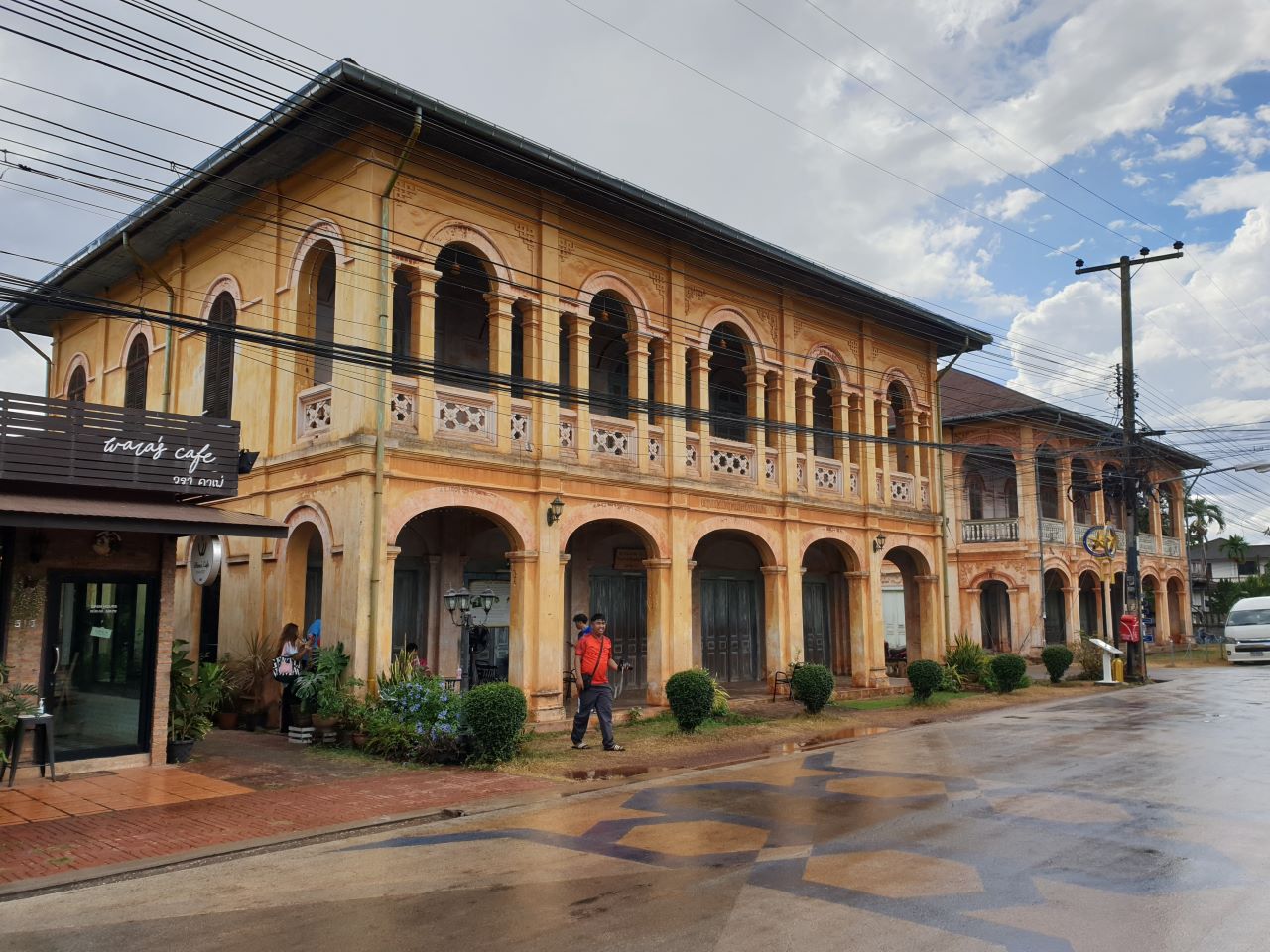 Tha Rae Community.......Of course, Saint Michael's Cathedral it's not the only building in Tha Rae, and other colonial style buildings exist which have a history all of their own. In one of these buildings there is a restaurant and that will do nicely as it's now past midday. As one would expect this restaurant serves both Thai and Vietnamese food. Some of these buildings have signboards giving their histories and not forgetting there is some street art here too. Finally, we have a bit more time to view Nong Han Lake from a different perspective at Tawan Ron Thee.