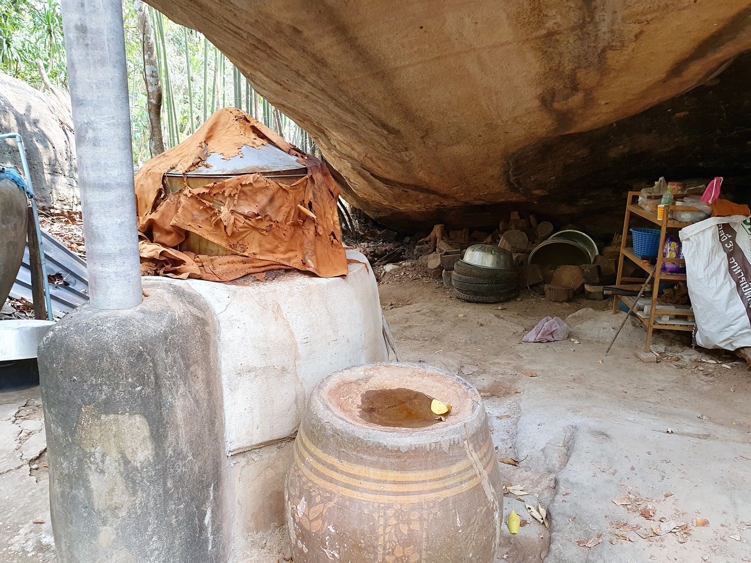 At this point I should mention where I get the information from to compile a visit list. In many of the larger or more visited provinces compiling a list is quite easy but here in Yasothon there is a scarcity of online information. I initially use the tourist authority of Thailand website which has given me a good start but as soon as you arrive in a new destination more and more attractions are advertised in various locations. One option is to completely forget onsite information as all the interesting attractions seem to be sign posted with blue information boards. There is one more source of information that we regularly use and that's by word of mouth which means asking local people and one of the best places for this is at local restaurants no matter how austere they appear. Heading to our next site visit is proof that this works and we soon pick up information from the blue boards and find ourselves in Kut Chum district where there is a distinct change in scenery. Ever since we left Nakhon Ratchasima there has been an endless flat and barren landscape with most rice paddies now totally unproductive in the hot dry season. As we follow the blue boards we reach an area of low hills, forested with blackened and weathered limestone rock formations quite familiar at higher elevations in Isan provinces.