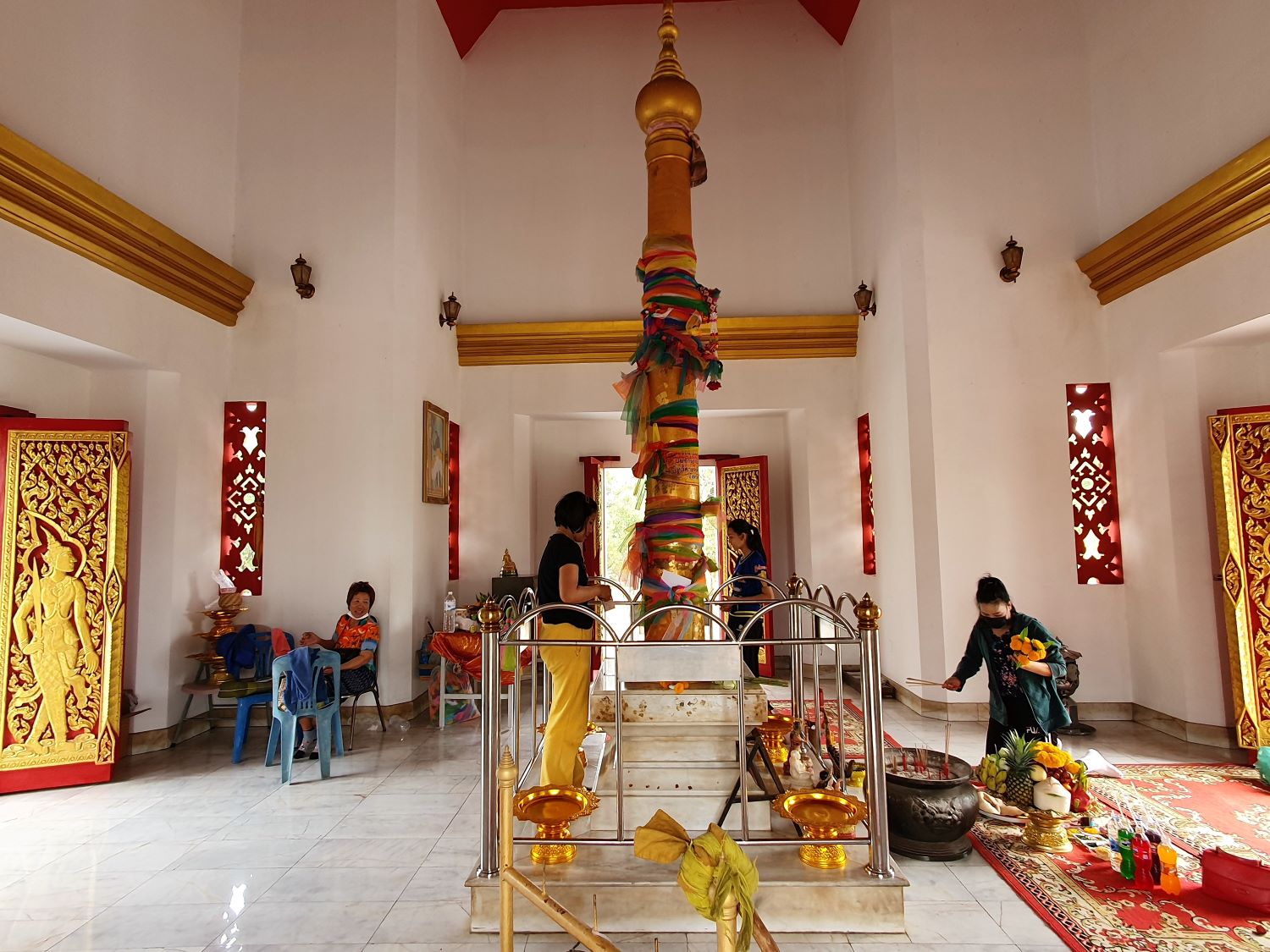 Chao Pho Kut Shrine....... Chao Pho Kut Pong City Pillar Shrine is an ancient shrine believed to be where the spirit of Chao Pho Thong Kham lives. The city pillar is made from a golden shower tree. The height from its base to the top is 170 centimetres. The top of the pillar is entirely carved and gilded with lacquer. His Majesty the King sprinkled and anointed the shrine in 1982, so many people respect it. Chao Pho Kut Pong Shrine and the City Pillar Shrine are located approximately 100 metres from Wongwian Namphu situated next to Kut Pong Park.