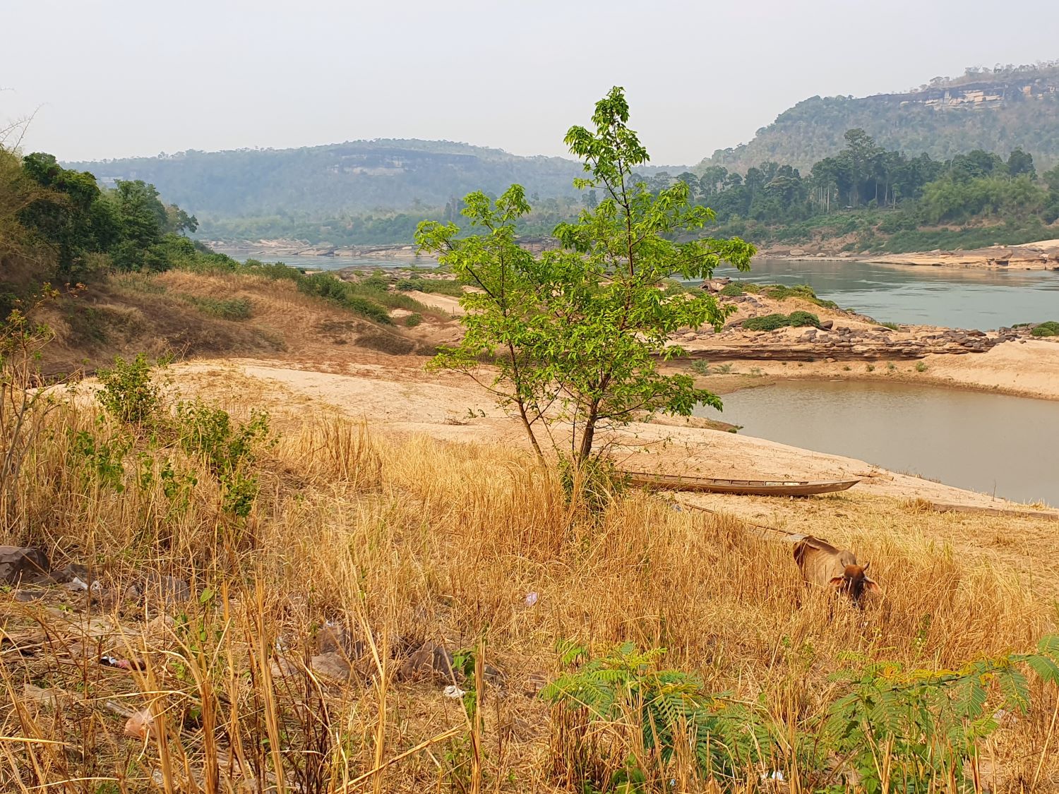 Pha Chana Dai....... Pha Chana Dai, the main attraction in this part of the park is a cliff with viewpoints offering amazing views across the Mekong River into Laos. There is a question mark over the entrance fee of the park for me and the distance to reach it. However, neither become an issue on this occasion as this part of the park is closed at Dong Na Tham, another rock field. It seems that this time of year in hot dry season there's too great a fire risk. We will try in another direction. Returning back to Na Pho Klang on the 2112 we notice another route into the park, this one giving direct access to the Mekong River.