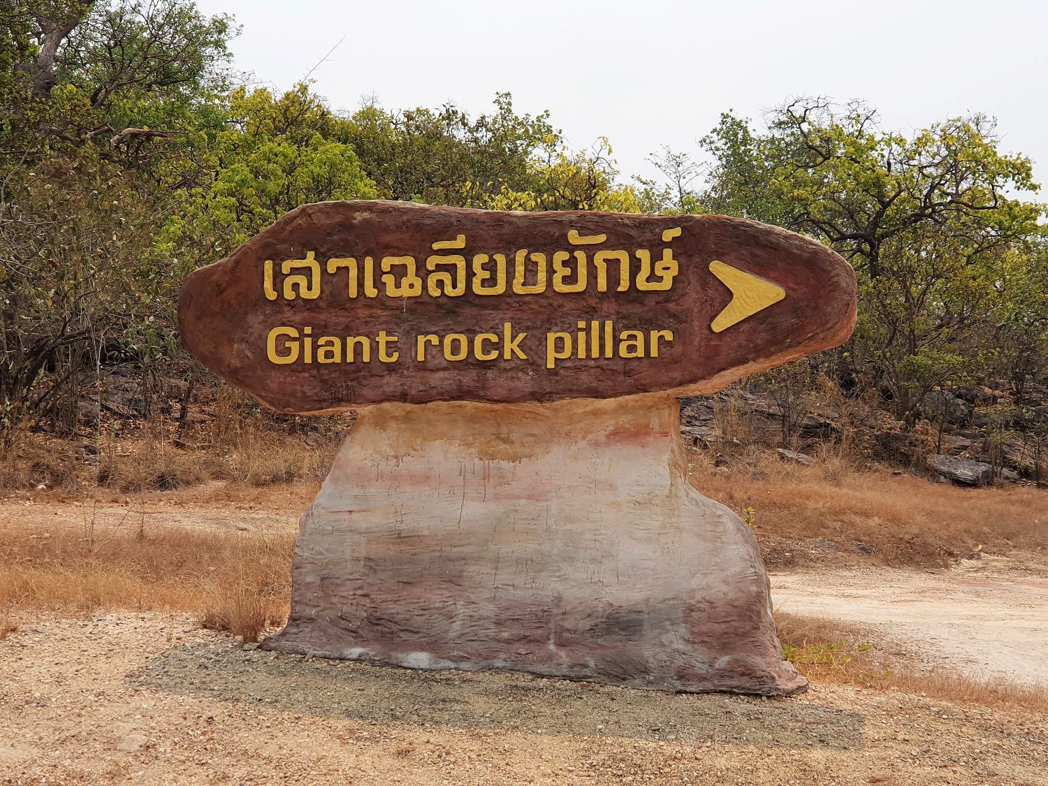 Giant Rock Pillar....... The Giant Rock Pillar, Sao Chaliang Yai in Thai, is located a few kilometres from rural road 2112 at Samrong. This giant rock pillar is a prime example of many featured in the park. The process that created them is the same. The sandstone rock bed was influenced by external forces or have been caused by the expansion and contraction when the weather was hot during the day and cold at night. Cracks and joints developed in the sandstone bed. The size of these cracks and joints depends on external forces and where they are weak, they are easily eroded. Later, these cracks become wider caused by both vertical and horizontal erosion to the bed rock. Sandstone which is normally strong will be eroded little by little. The eroded parts are then destroyed and washed away while the hard parts remain creating monolithic rock pillars.