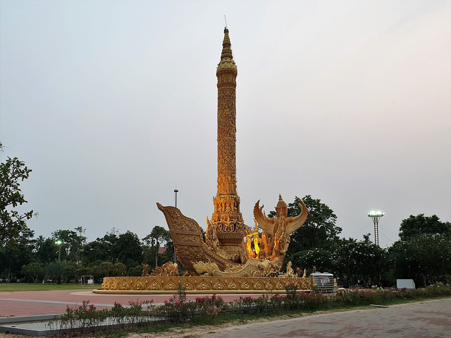 Tung Si Mueang....... Tung Si Mueang is a monument in the central square of the city with a soaring gold pillar and a temple within beautifully landscaped flower gardens & nearby night market.