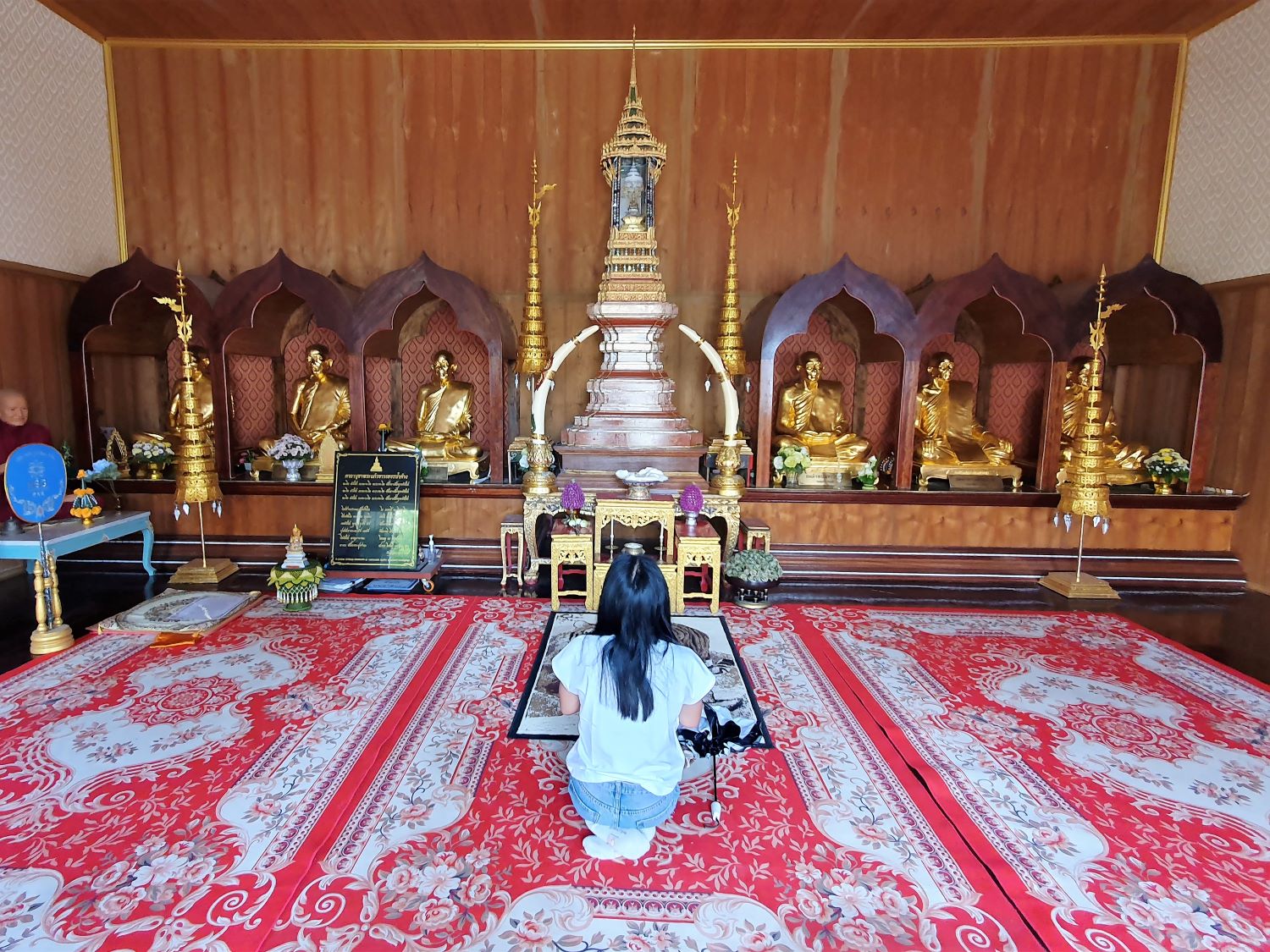 I must admit that I am privileged to be here during the three days of Songkran. During this time the sacred image is placed in a position that allows worshippers to pour water over it in an annual cleansing ritual.