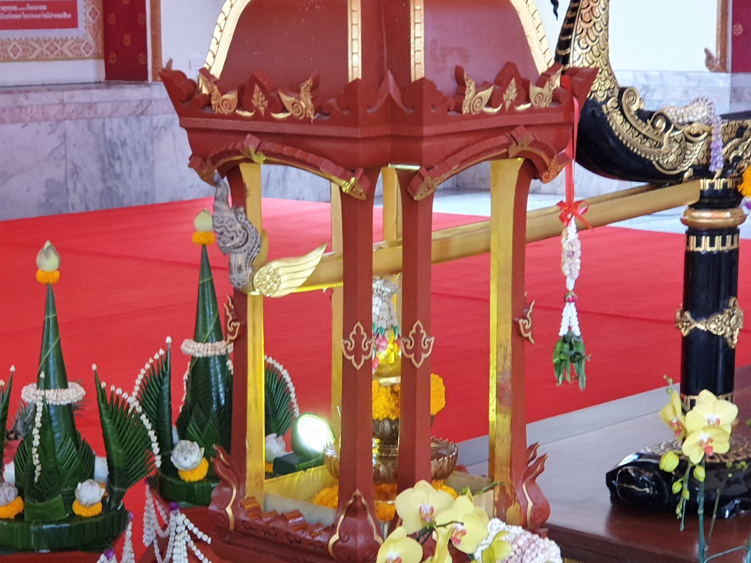 Wat Su Patanaram....... Wat Su Patanaram is located close to the Mun riverbank. The main temple hall is built in a unique style, mixing European, Chinese and Thai elements. The lavishly designed hall was built to receive grace to perform the Royal Cremation Ceremony replicating the moon flower laying ceremony of His Majesty King Bhumibol Adulyadej (King Rama IX) that took place at Sanam Luang in Bangkok on October 26, 2017.