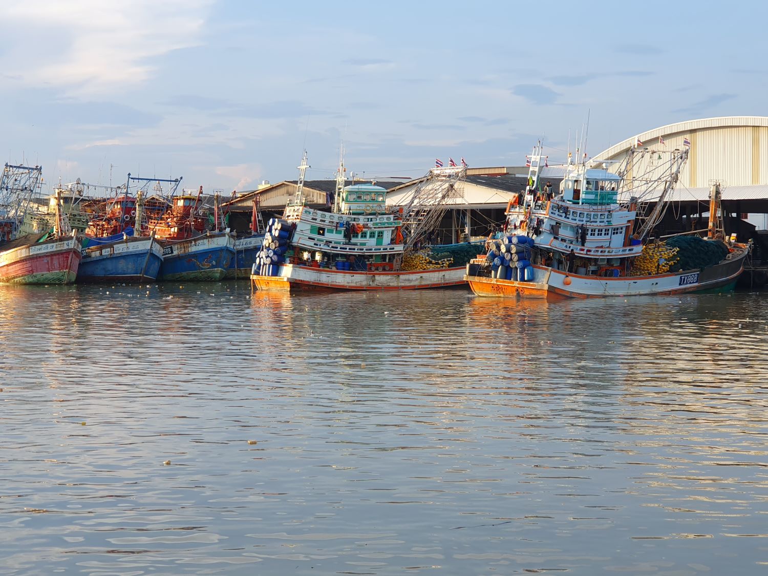 Rayong River Estuary....... At 5:00pm we're back in Rayong and I figure it is good if we head for the coast for an early dinner while the sunsets. Then we can be back in the room early too. The Rayong River Estuary accommodates a large fishing fleet and provides a good photo opportunity.