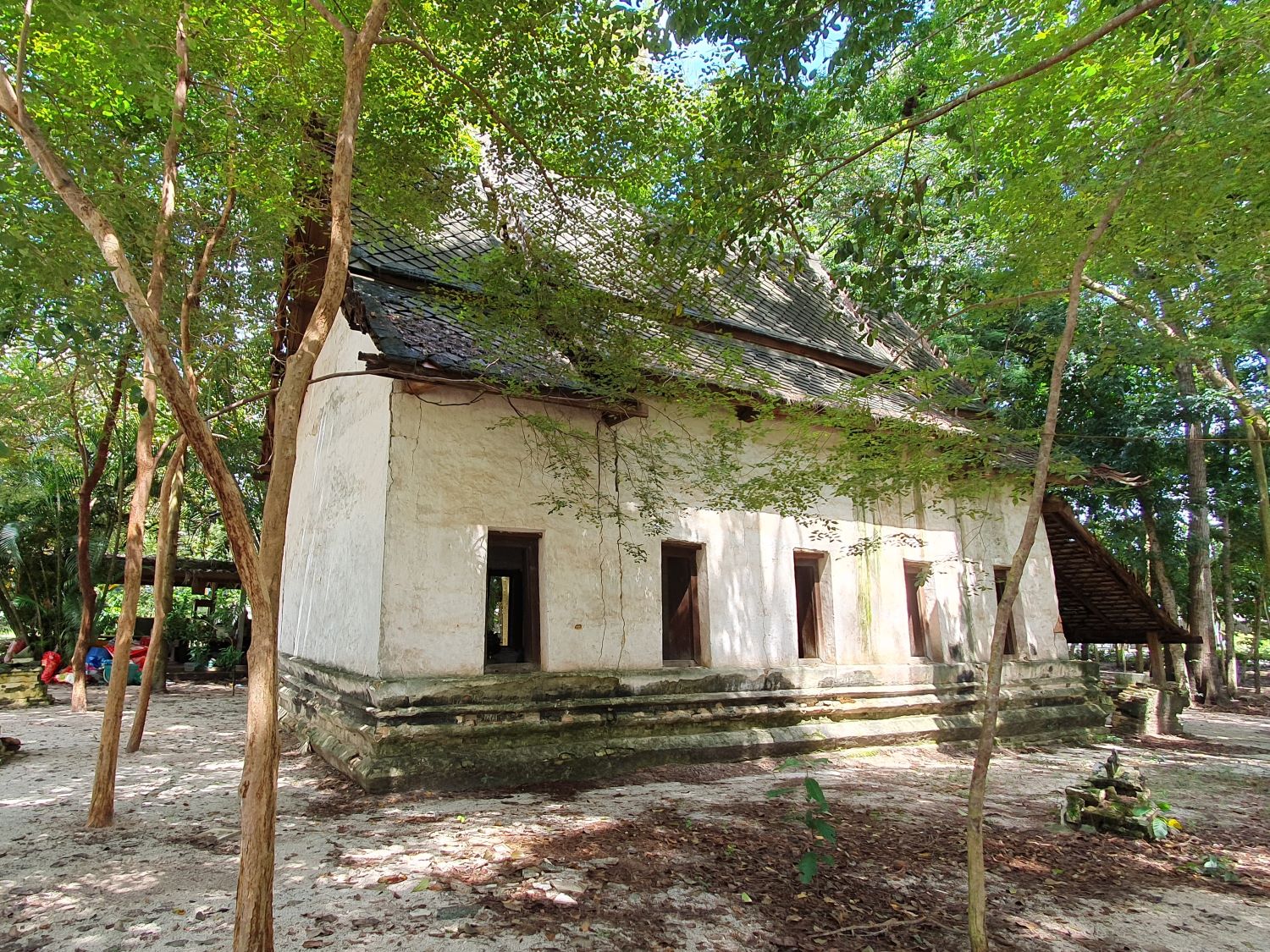 Wat Khao Bot....... Wat Khao Bot is a small temple in Thapma sub-district of Rayong City District. Little is published about this temple but near a splendid new prayer hall is an old hall now derelict, its fabric in too poor a condition to renovate easily.