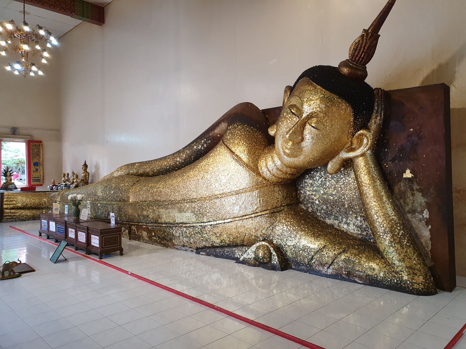 Wat Pa Pradu....... Located not far from Rayong Clock Tower, Wat Pa Pradu is a must-visit temple in Rayong city. This ancient temple was built in the Ayutthaya period and is famous for its 12-metre-long reclining Buddha which has the particularity of being installed head to the right, when in most cases, it's the other way around. The temple was likely abandoned after the fall of Ayutthaya but the image in an old ordination hall was discovered by a monk on pilgrimage. With the help of villagers. he rebuilt the temple on this site. Pa Pradu means, gateway to the forest indicating that the area was once overgrown.