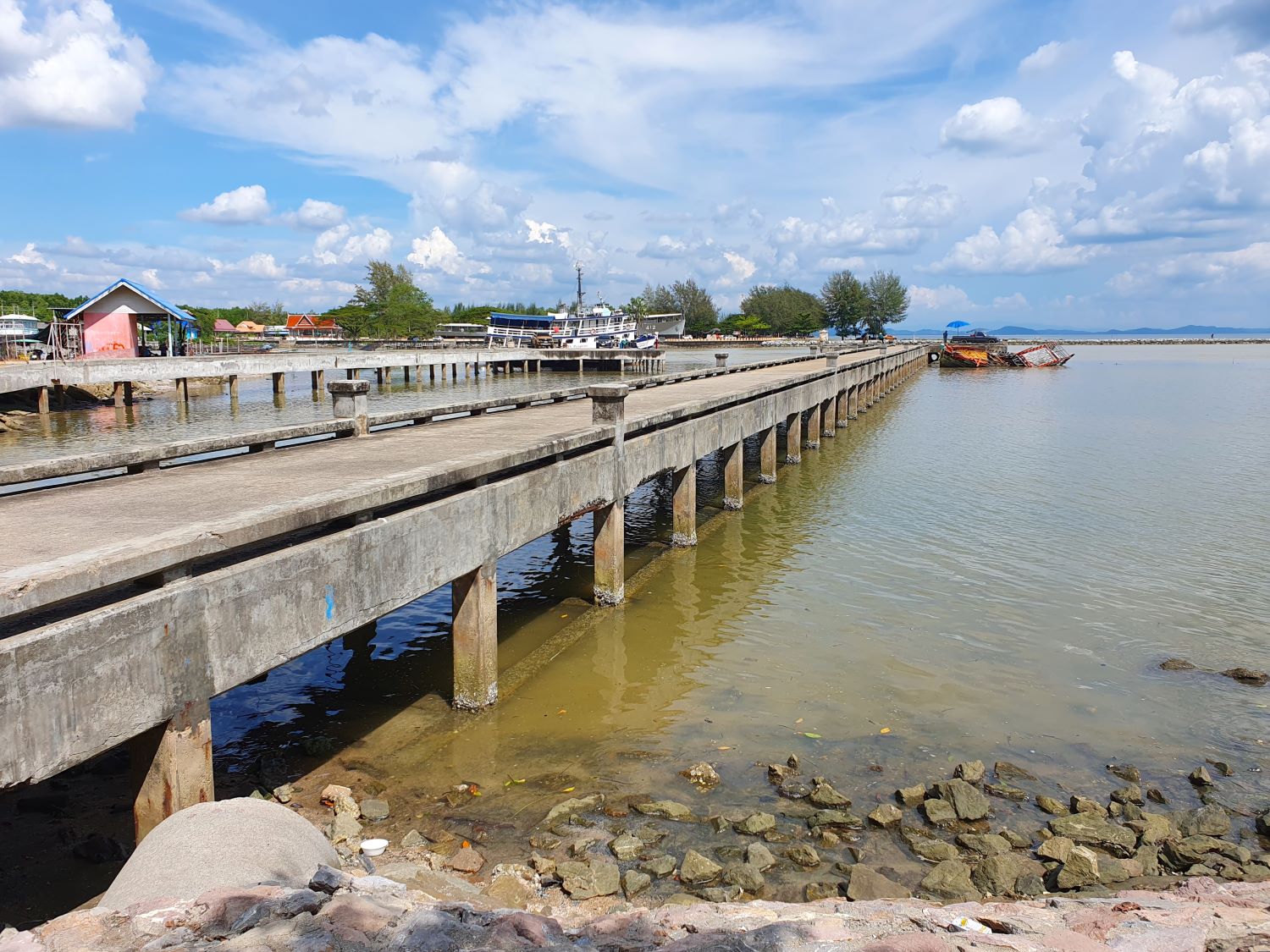 Laem Son Viewpoint....... Laem Som Viewpoint has a lovely beach and is totally undeveloped which is wonderful. The only thing that's here is exactly what we need, a local restaurant. Consisting simply of a covered area with tables this is most welcome despite the lack of choice. After spending a little time looking around, we finally cross the Prasae Bridge.