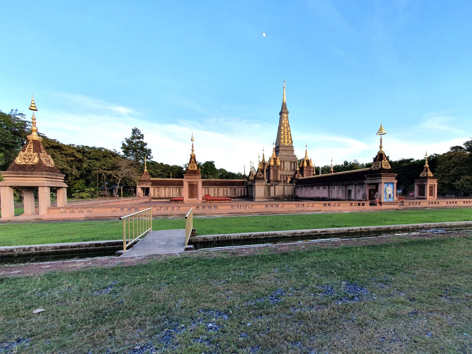 Phrathat In Plaeng....... Prathat In Plaeng in Phayakkhaphum Phisai District, was built more than thirty years ago. It was started by Luang Por Saman Ophaso who brought together the villagers to build the Phra That. Its design inspiration was from Phra That Phanom. From the decoration on top, it resembles the Phra That Na Dun Cloister and landscaping was made in Khmer style, with wells being built in all four directions of the Phra That while the pattern of the reliefs and stucco are used in Balinese art. All the construction was done by craftsmen in the area.