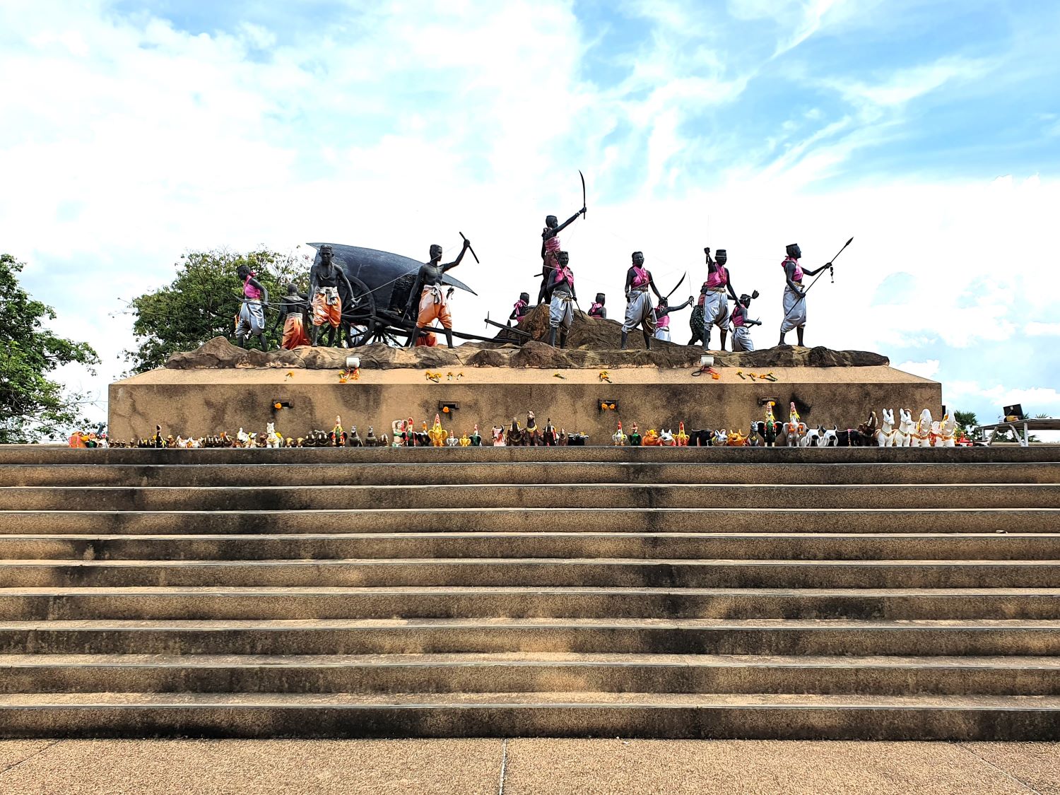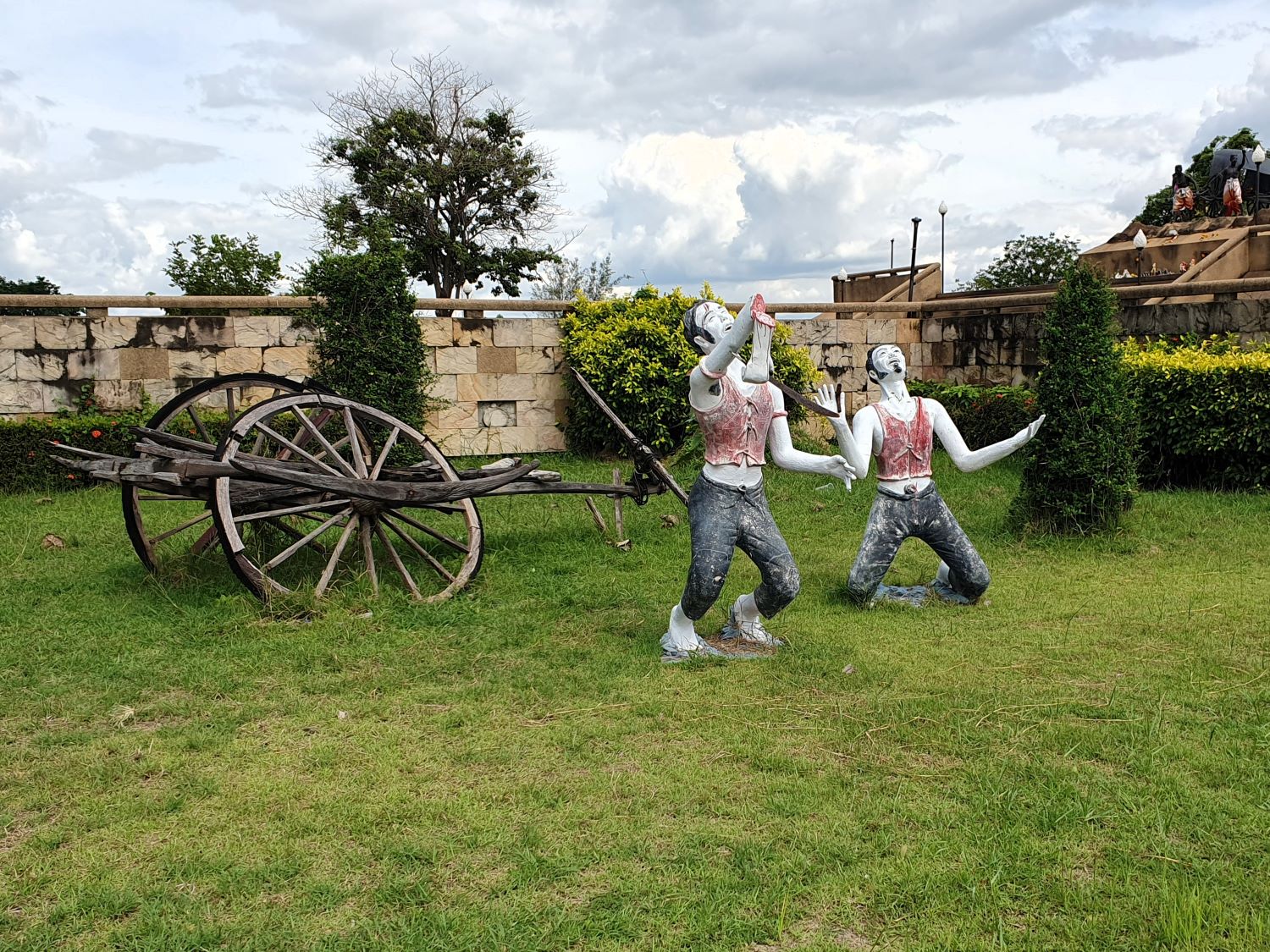 Thung Samrit Memorial....... Thung Samrit Memorial in Phimai district is a wide field and battleground between the Khorat people and Laotian soldiers during the reign of King Rama III. A shrine was constructed by villagers in 1988 to pay homage to the fighters. A battle scene is represented on the memorial in the form of models of the fighters who are remembered here. On the opposite side of the Mittrephap Road is another historic site or more accurately, a pre-historic one.