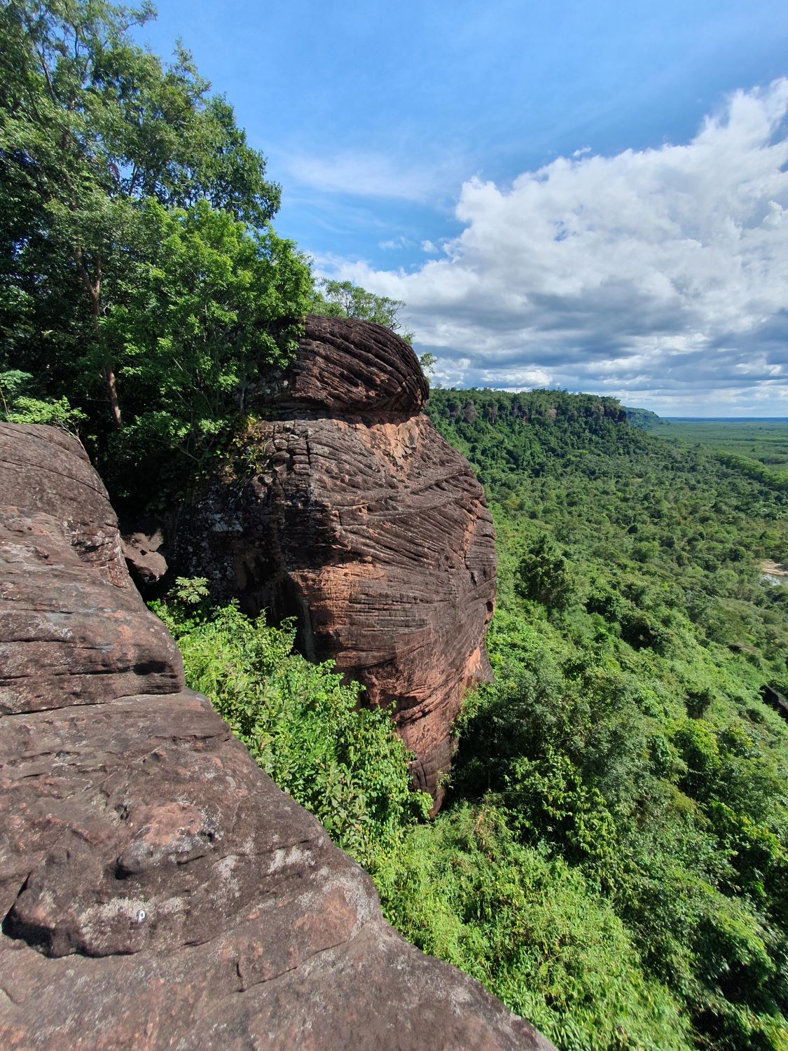 Phu Sing Bueng Kan...... Arriving at Phu Sing it's immediately clear this is a popular attraction as the staff is busy finding parking spaces, issuing tickets and processing the crowd for truck rides to the Phu Sing attractions. The park entrance fee is 100 baht plus 500 baht for the truck. The truck will take up to 10 people and we join others to bring that cost down to a third of that. The tour takes around an hour during which we cover the main attractions in the park. These are: Phu Sing Stone, Tham Ruesi Viewpoint, Hin Sam Wan, Elephant Stone, Phu Sing Gate and Sang Roi Bor. All of these except the first offers amazing views. To add to the atmosphere of this place, our truck driver takes some amazing photos which I will treasure as a memory of this amazing attraction. It's taken a long time for this tour to come alive but then it's all over in a flash. At this point I'm feeling buoyant and look forward to the next attaction.
