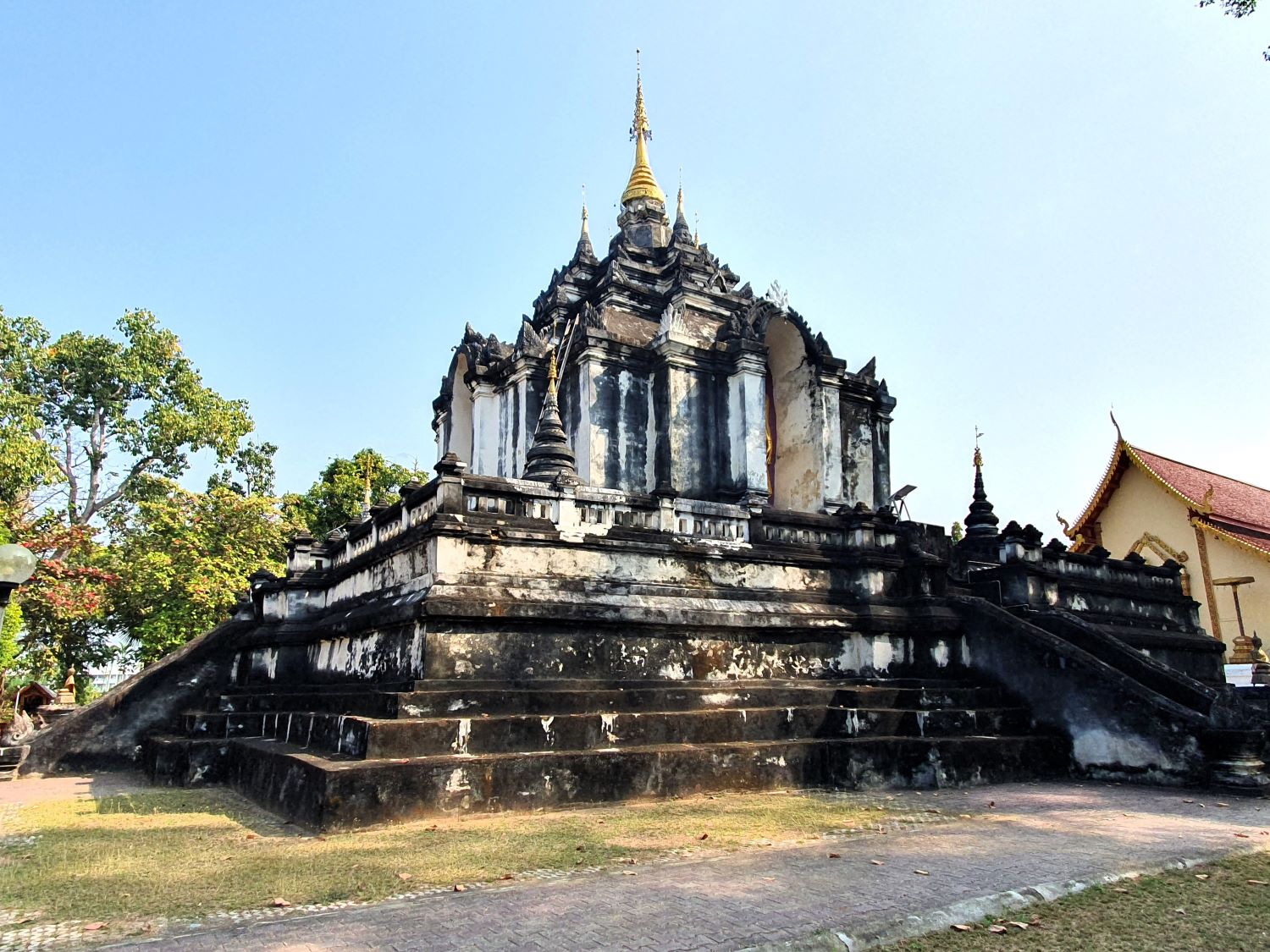 In front of the chedi is an impressive sermon hall in Lanna style the type which I consider one of the most beautiful in Thailand.