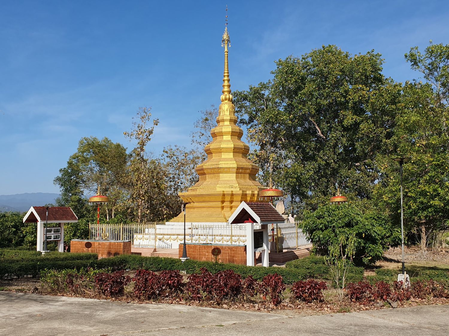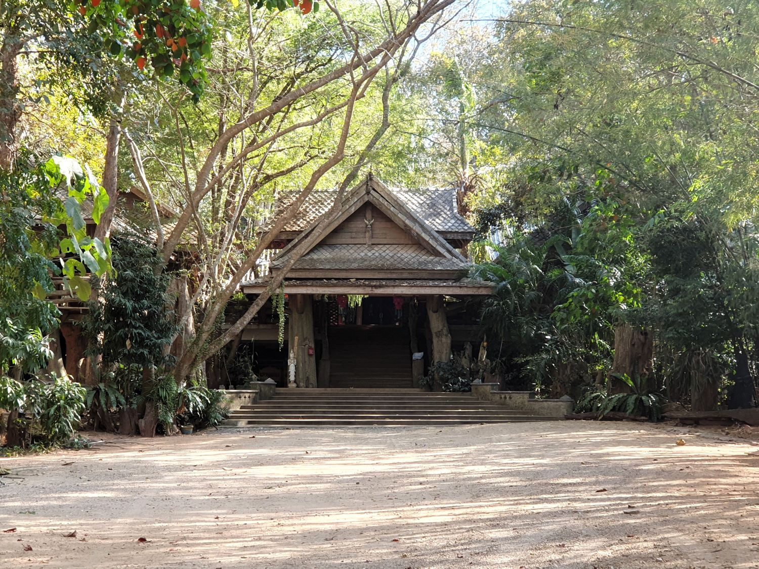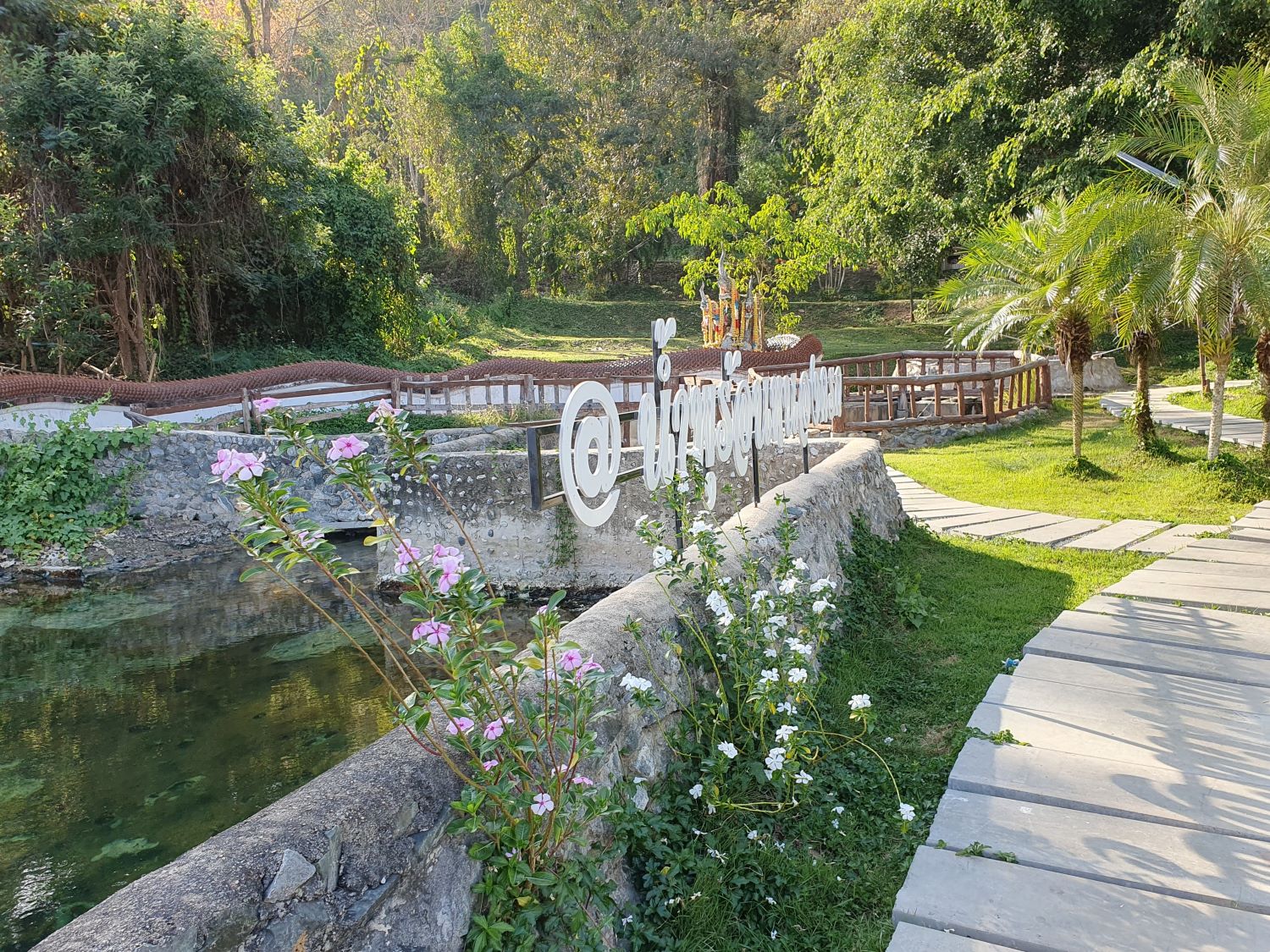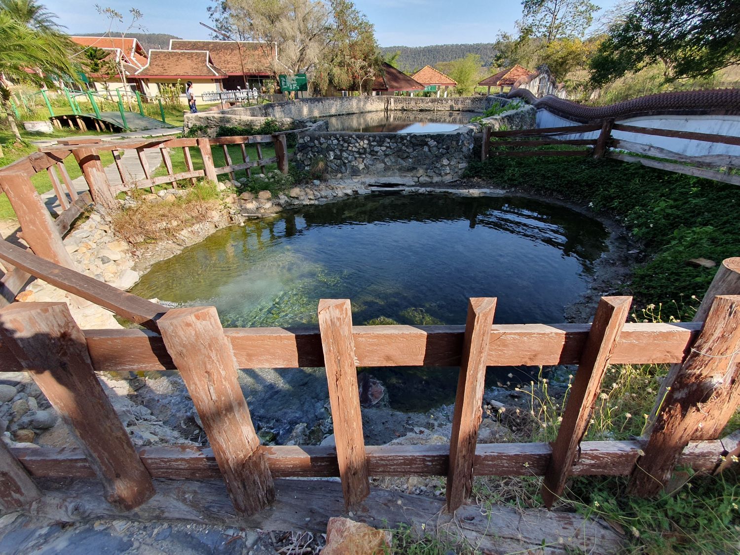 Due to a climb up to this cave I'm just not in a position to check it out which is a pity. I have to be content to look around the temple itself which is modest by any standards. Wat Phrachao Lan Thong....... Wat Phrachao Lan Thong, built in Lanna style has the unusual feature of having porches on either side of the viharn. In the ground is a golden chedi built on a square base with five levels tapering to the spire on top. In order to enter this temple you need to pass through a gate which gives the clue as to its origin. Two small cannon appear on each side of the gate. This once was a fortified enclosure and a base for the Lanna Army which in context with what else is in this district could predate the building of the city of Chiang Mai which with its moat was more easily defended. Nong Krok Hot Spring....... As hot springs go, Nong Krok Hot Spring is unremarkable and deserted. That may be due to the time of week but there seems nothing to stop you using the facilities for free. Some landscaping has been achieved here in an area with good views. I arrive here just to record what's here. Wat Ban Pong....... Wat Ban Phong lies in a walled compound with an entrance through an ornate spired gate. The sermon hall is constructed in traditional Lanna style with a two tiered roof. A golden Buddha image is seated on a pedestal to the left of the main hall. Apart from its attractive design there is nothing really here that I can turn into a story. Mae Kon Reservoir....... Mae Kon Reservoir lies to the north of the district and it's not that easily accessible due to a poorly paved road leading to it. The reservoir is small just one kilometer from end to end but it sure is peaceful but with no facilities whatsoever.