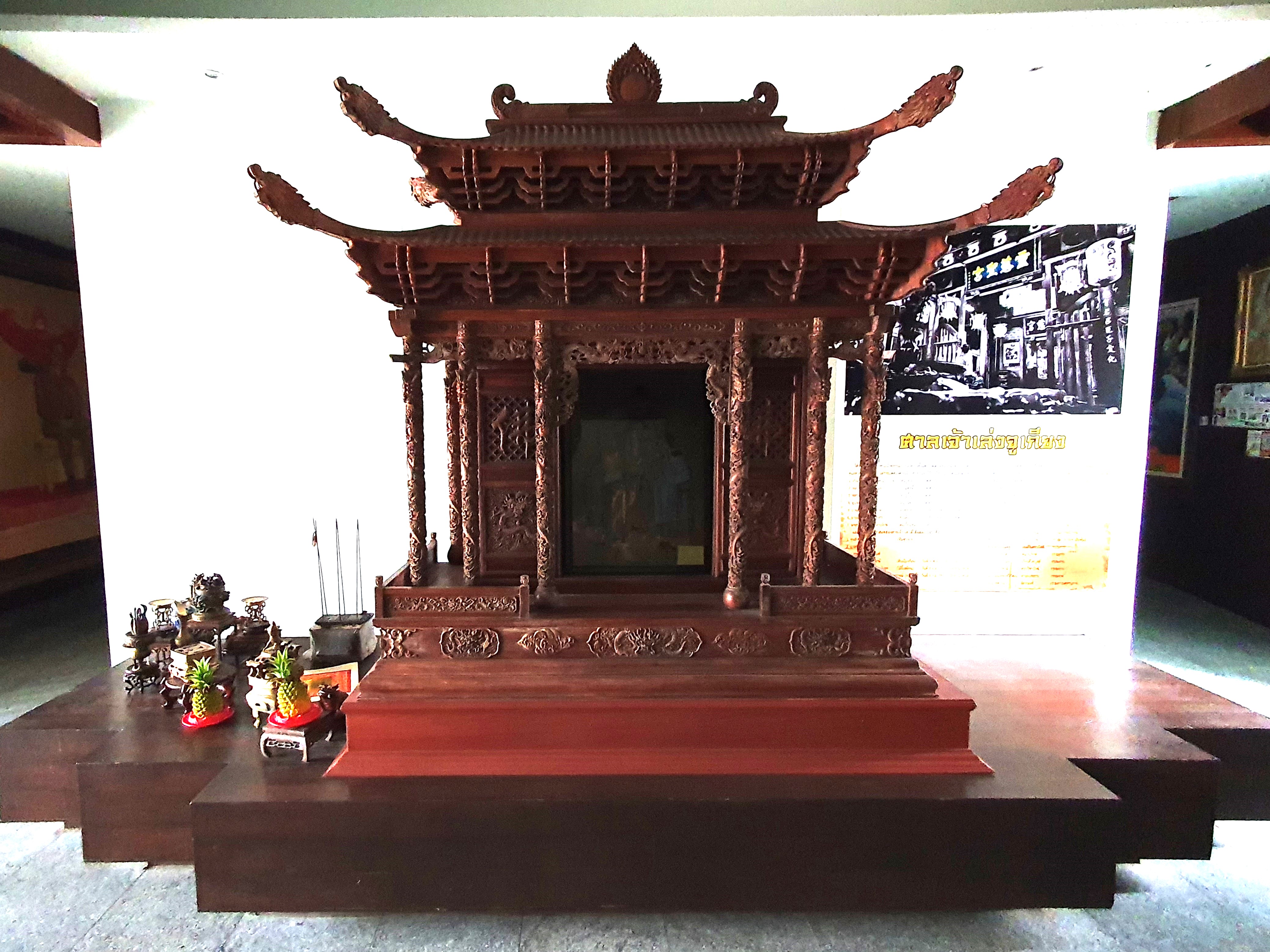 Not expecting much here, I should have realised that this town would be an important and I see this area is a significant heritage site. The problem is that it's started raining again, this time more heavily. I can't let this interrupt a busy day and do my best to record what's here. Thankfully the rain eases by lunchtime by which time I've wrapped up my walk. Chao Mae Lim Ko Niao Shrine....... The Chao Mae Lim Ko Niao Shrine is located in the Chinese Quarter of the old town. Lin Guniang or Lim Gor Niaw also named Lim Kun Yew, is a deity worshiped by the Chinese people in southern Thailand. Lin Guniang was said to be the sister of Lim Toh Khiam, who according to legend committed suicide after she failed to persuade her brother to return home after he married a Muslim and converted to Islam. Later she began to be worshiped as a goddess by the ethnic Chinese communities in southern Thailand for her sense of filial piety and patriotic feeling for China. As well as a shrine to her there is a museum here which tells this story as well as describing the history of the times with impressive models and Chinese style artwork.