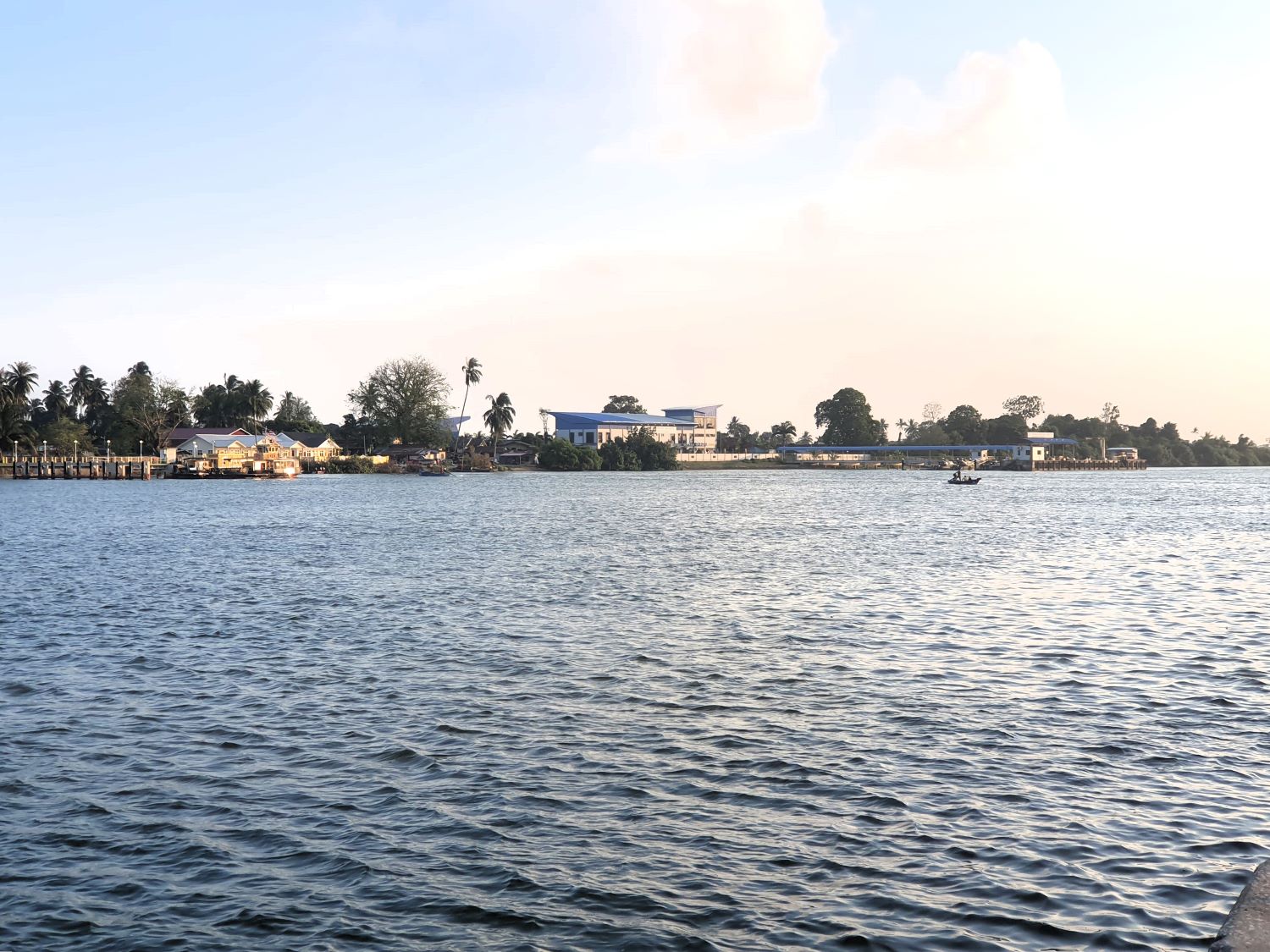 There is one more site that I need to check out described as an ancient site but the GPS leads us into the forest to goodness knows where and I decide to abandon the idea. It's not long before dusk but there looks like sufficient time to double back and give my partner her way. Bang Nara River (Thai/Malay Border)....... We enter the border town of Tak Bai once more, this time to take a better look at the Bang Nara River Estuary. This river, of course forms the border between Thailand and Malaysia. On the Thai side here there is a promenade with restaurants and mobile food sellers. Light is beginning to fade and I'm up for taking dinner here but Katoon is satisfied with this detour, her curiosity ended. However, it's a 40-minute drive back to Narathiwat so it's something much more basic tonight for dinner.