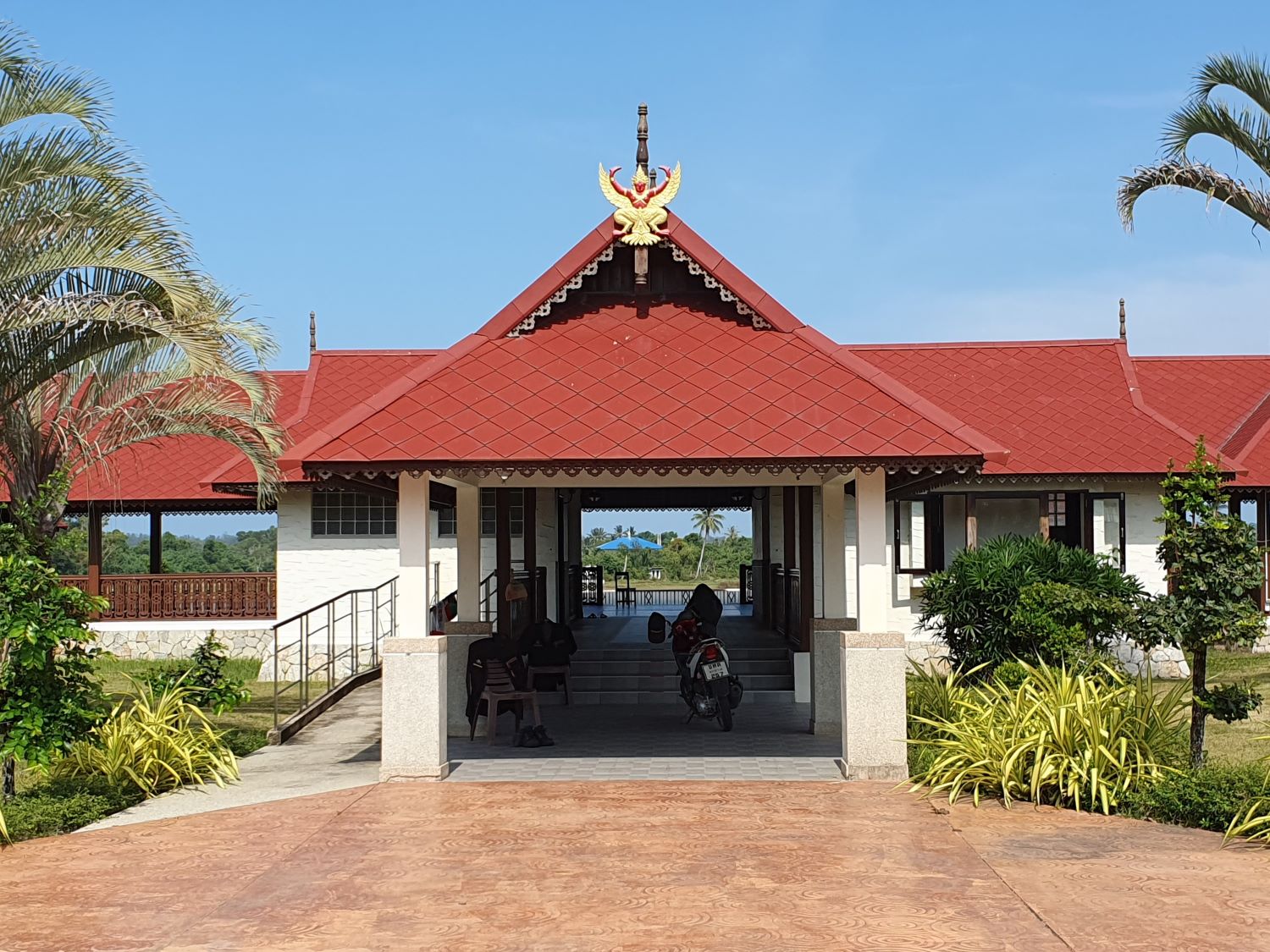 For the second time today I find myself in conversation, this time with local disciples of this mosque. Whatever these people think of me on the inside they certainly don't show it on the outside and I can't but admire their inquisitive and friendly nature. Surely this is how it should be everywhere. Fear is an emotion that complicates everything in life. We now need to head back into the city. Commemoration Royal Pavilion....... The Commemoration Royal Pavilion lies near the estuary of the Bang Nara River. This pavilion was used during the Narathiwat Annual Fair by His Majesty King Bhumibol Adulyadej and Her Majesty Queen Sirikit and members of the Royal Family on occasion of the boat races here. It's time to explore the rest of the coastline as far as the Malaysian border. Wat Chon Thara Singhe....... Wat Chon Thara Singhe or Wat Phithak Phaen Din Thai is an old royal temple located in Chehe Sub-district, Tak Bai District. The temple was built at the end of King Rama IV's reign when Tak Bai was still a part of Kelantan in Malaysia. This temple is historically important because it is a historical site featured in arrangements over the division of land between Siam and Malaya (then a colony of the United Kingdom) during the reign of King Rama V in 1909 marking the area as remaining in Thailand. As a result, the temple is called Wat Phithak Phaen Din Thai, translated as 'temple that protects Thai sovereignty'. Wat Chon Thara Singhe has many Buddhist buildings in Southern Thai style. Riverside Pavilion....... The geography of Tak Bai District reveals a long sand bar known as Koh Yao that runs parallel to the coast while the area behind this sandy beach consists mainly of mangrove. The pavilion is simply a viewpoint looking across the Tak Bai River to Koh Yao. Saphan Koh Yao....... Saphan Koh Yao is the only land crossing point consisting of a wooden bridge. Although substantial it can only be used for motorbikes. At this point I can throw my hands in the air. I've now traveled the entire mainland coastline in Thailand. Wat Phraput....... I've selected Ban Phraput as our next stop despite objection from my partner. Fortunately my hunch is right and there is an amazing old wooden prayer hall here built at a time when steel and concrete were materials of the future. The building style is distinctly Southern with a mondrop and other buildings unique in their design. It's remarkable to think that these buildings are the product of imagination by a previous abbot using local craftsman. No two buildings are the same.