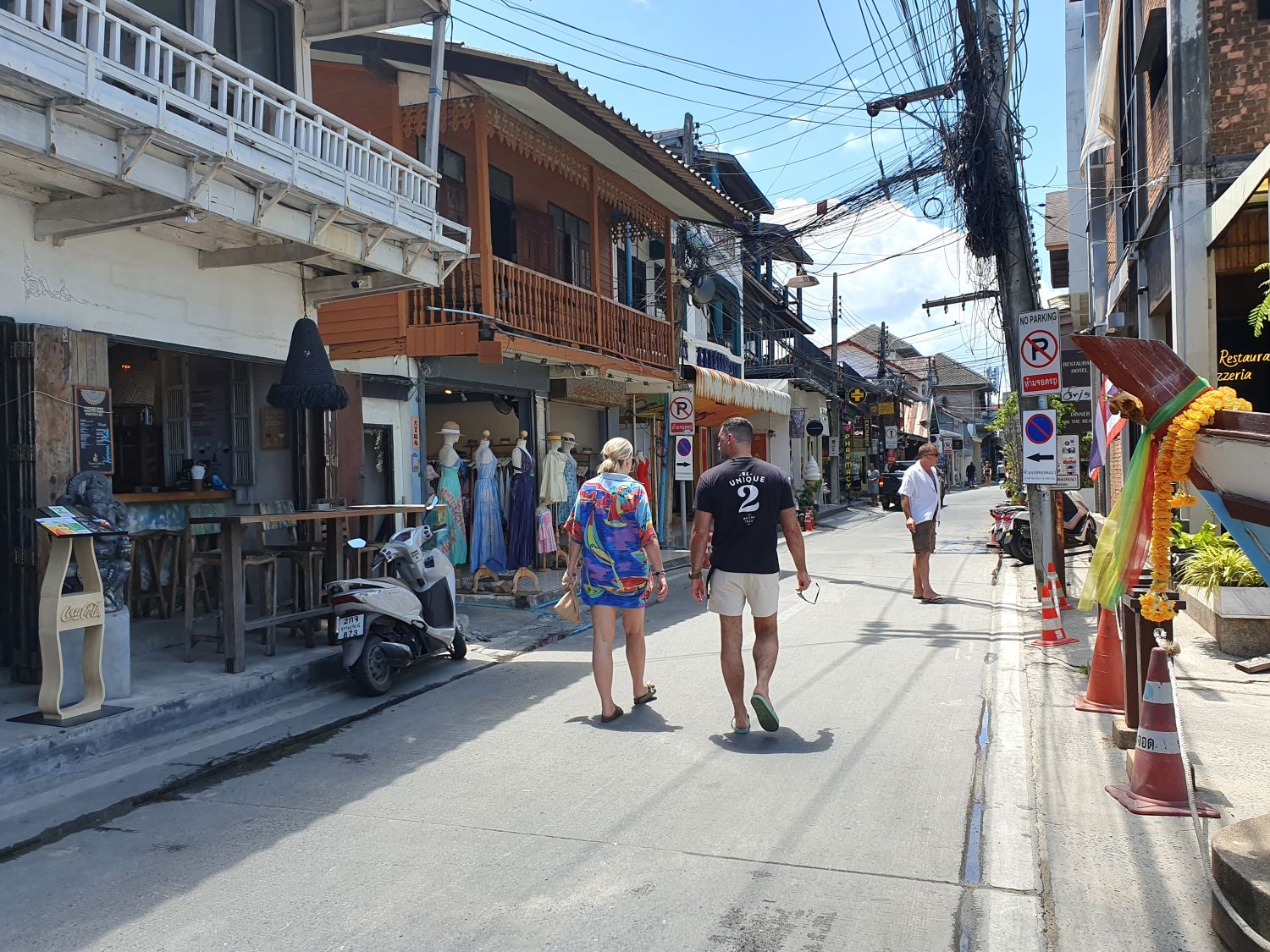 The vast majority of tourist activity on Koh Samui is centred in the Bo Put Sub-District which houses Koh Samui Airport, the popular Chaweng Beach and many of its attractions. It's only recently that a road has been cut through the coastal hills connecting it to the south of the island at Lamai. It's this road we use having been based in Lamai. Chaweng Beach....... We take the first opportunity to head for Chaweng Beach then almost immediately enter narrow streets. The beach itself has no coastal road so access to it is down small alleys, a number of which are private. The main street runs parallel to the beach but is narrow, crowded and has been converted into a one way system. The beach is divided into two parts with an overall length of about 4 km. I manage to sqeeze myself down a couple of alleys and being a foreigner, I am not out of place here and have poetic licence to go anywhere even to private resorts.