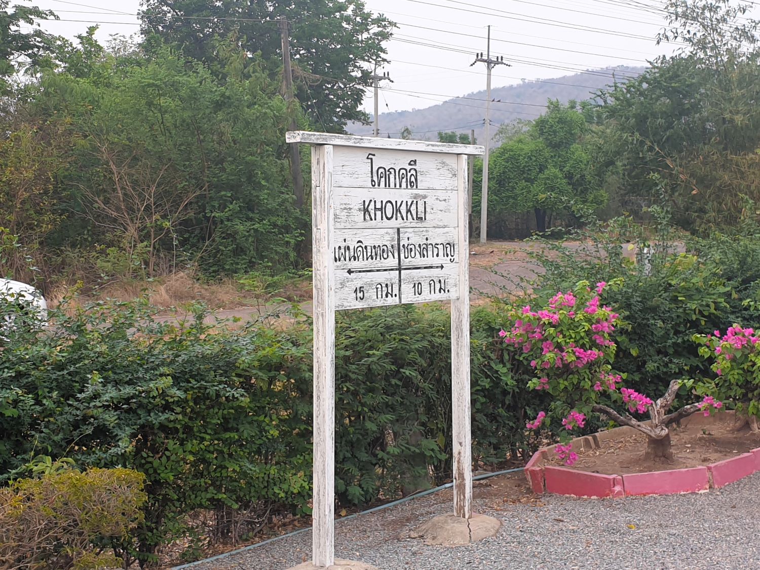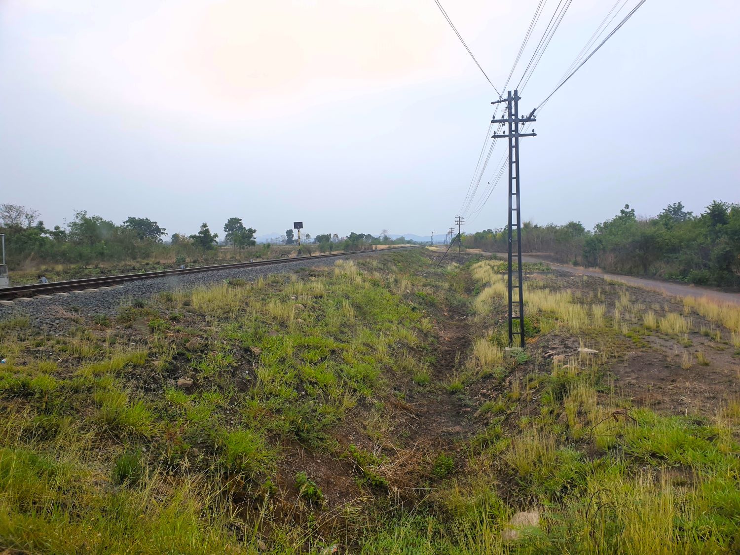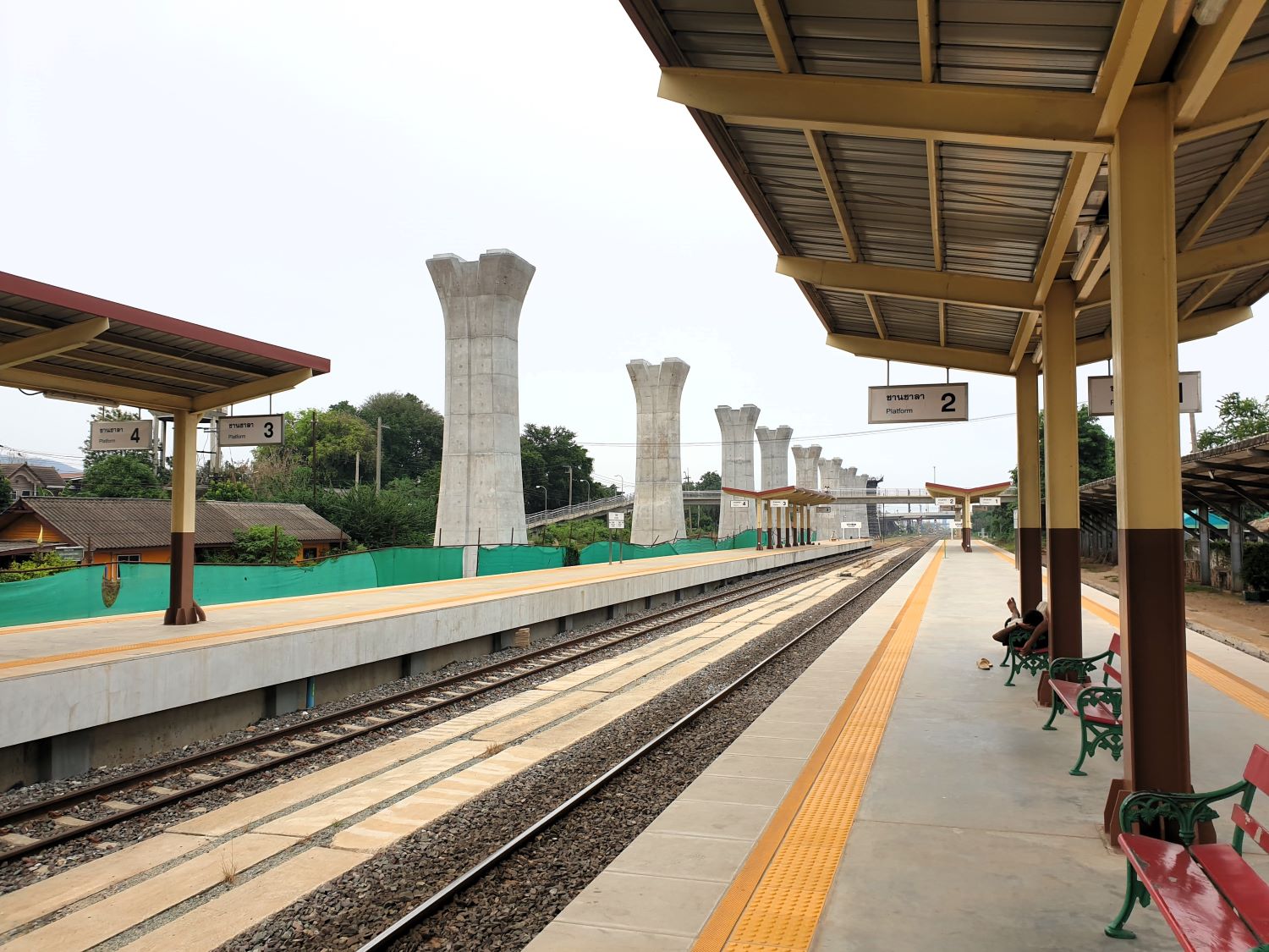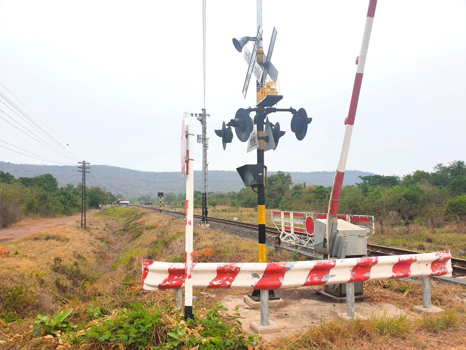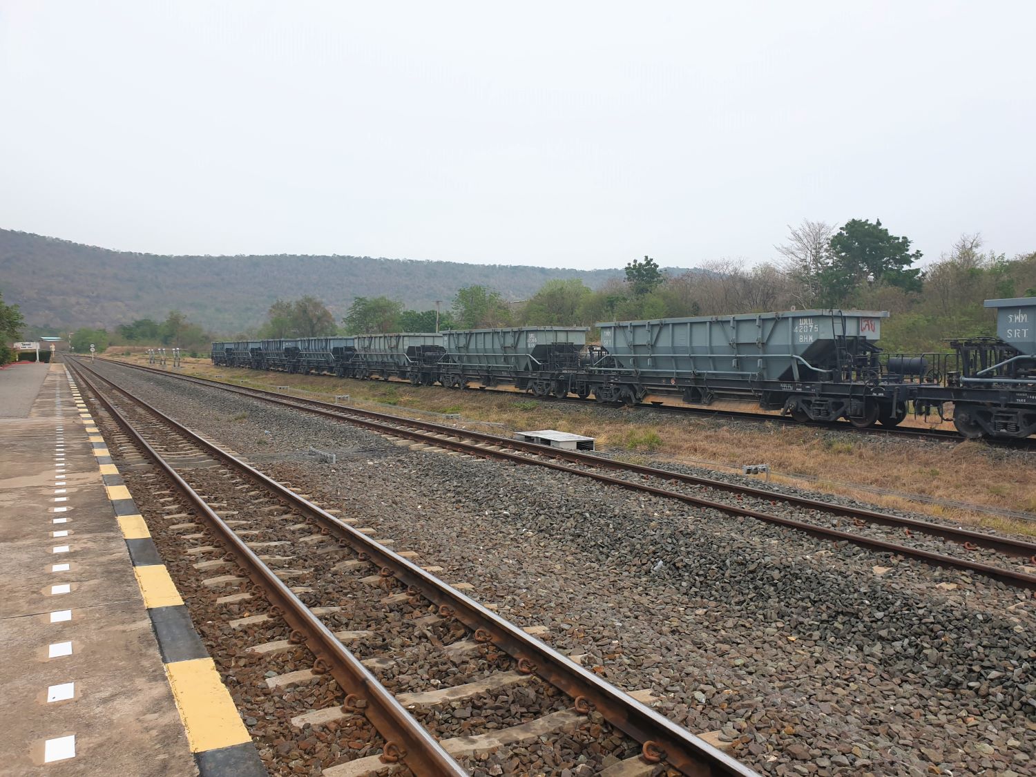 In a lovely forested area near a small waterfall they have been clearing land for access. The plan is to open up the area for folk to celebrate Songkran. There's a lot to do in just a couple of days laying a stone access road and building toilets. Good luck to all who come here but quite how this affects me I don't know. Three locations remain on my list but in mid-afternoon we are still 2-3 hours from our destination. The first location will actually increase the distance and I'm not amused at the delay but press on to Pak Chong and a visit to the station. Pak Chong Railway Station....... Missing out on my last visit, I'm again at Pak Chong Railway Station and should be in time for the 233 service to Surin that I can capture on video. Well, I am easily on time as the service is nearly 20 minutes late. That won't help with the schedule though.